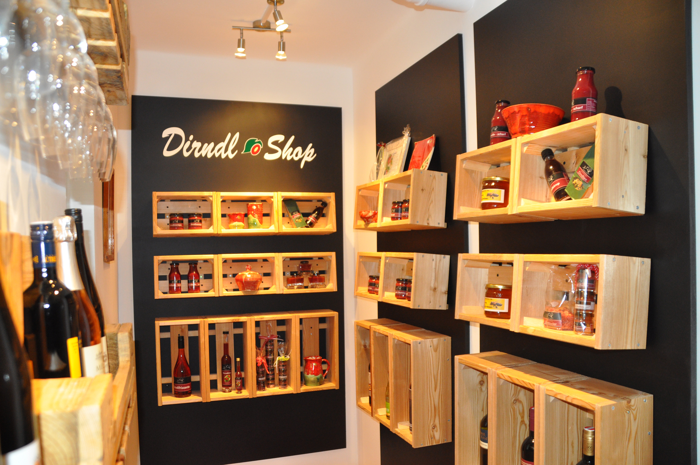 Im hauseigenen „Dirndl-Shop“ finden Sie u.a. regionstypische Spezialitäten von der Kornelkirsche (= Dirndl).