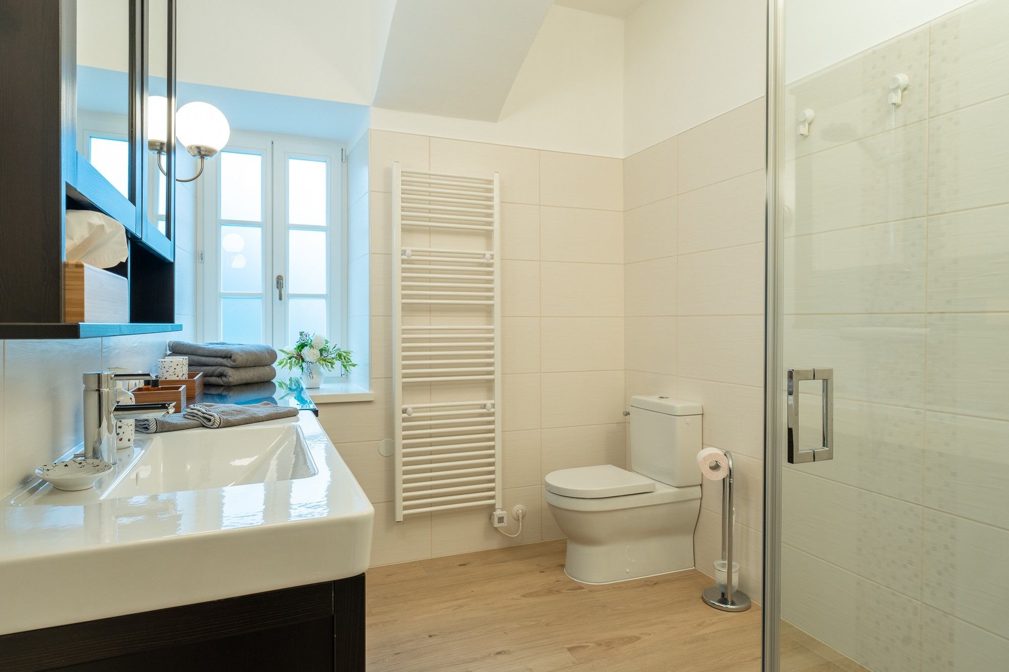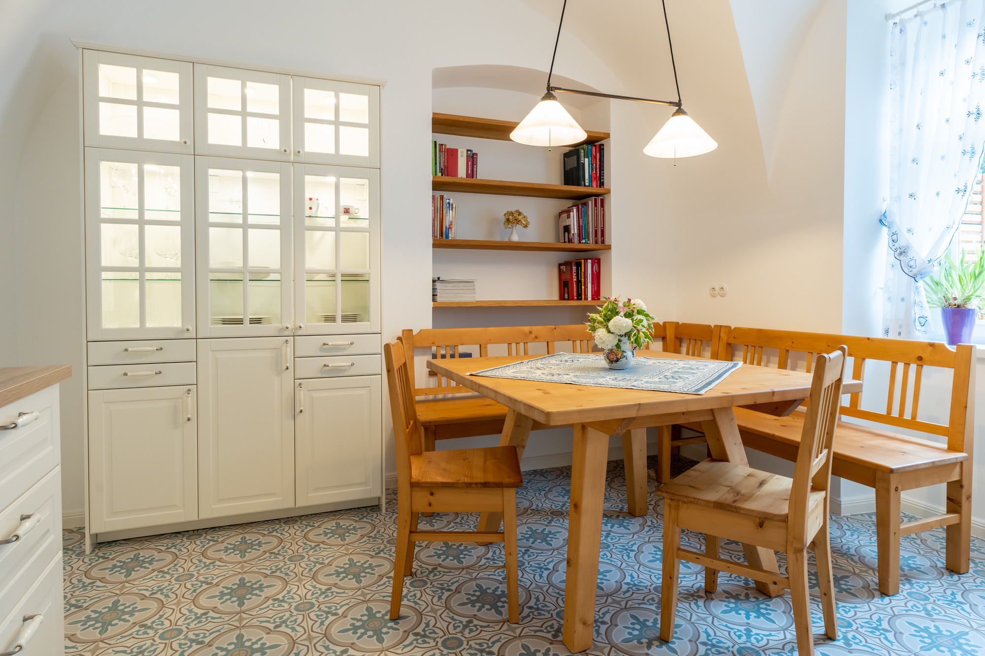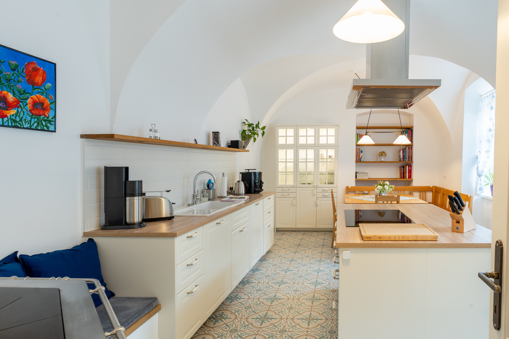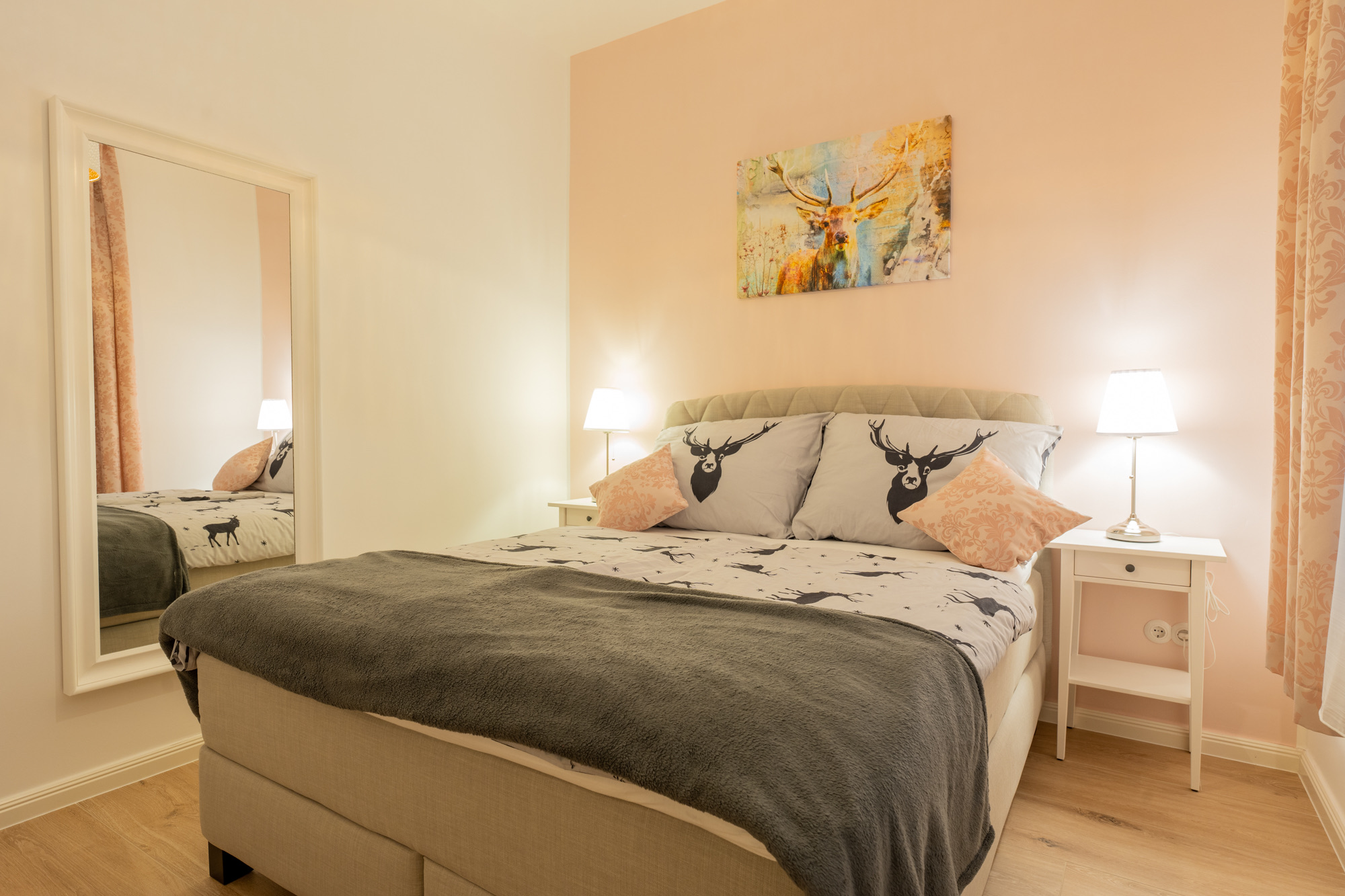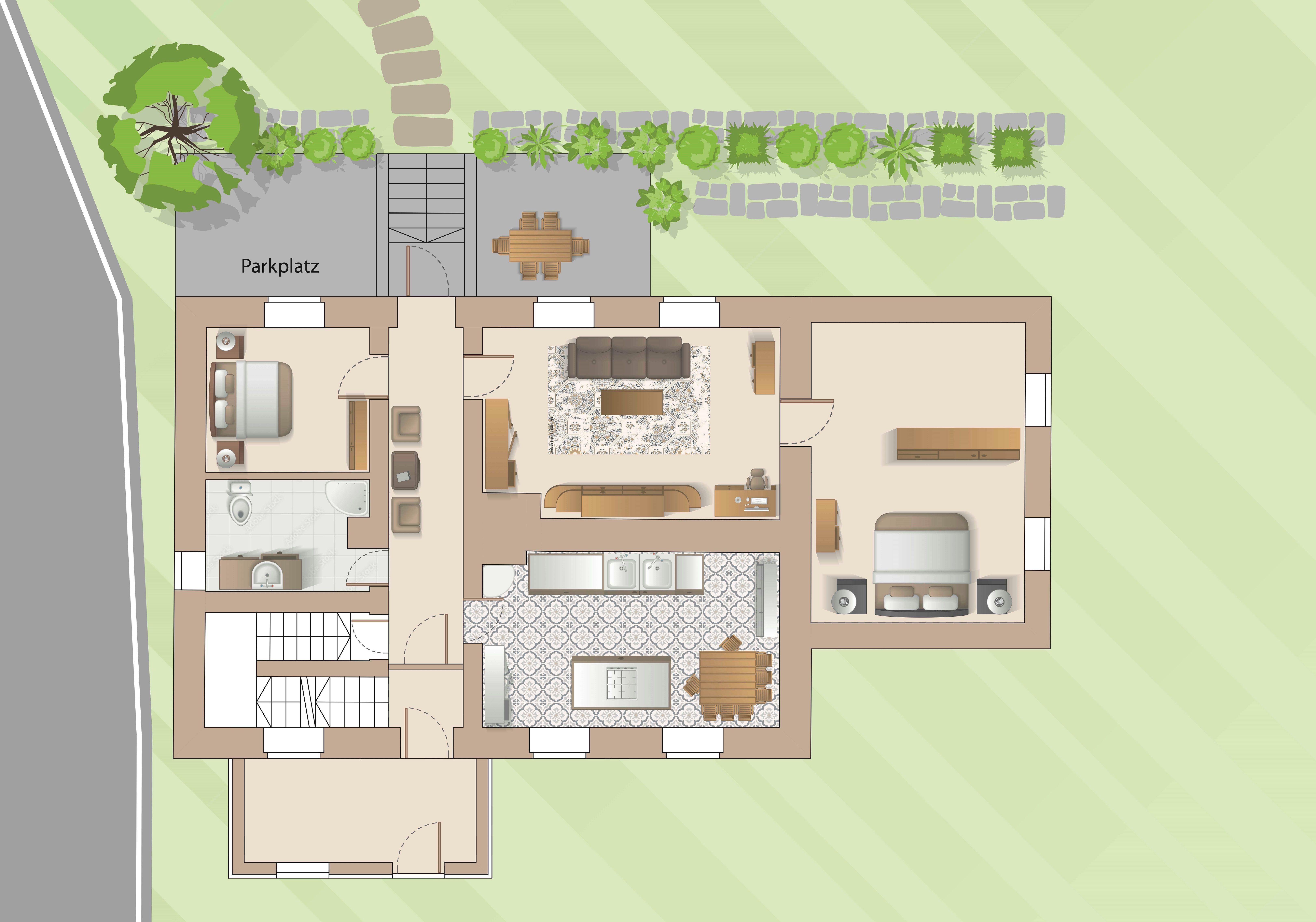 Die über einen separaten Eingang erreichbare Erdgeschoß-Ferienwohnung bietet rund 105 m² Wohnfläche für bis zu 4 Erwachsene und 2 Kinder.