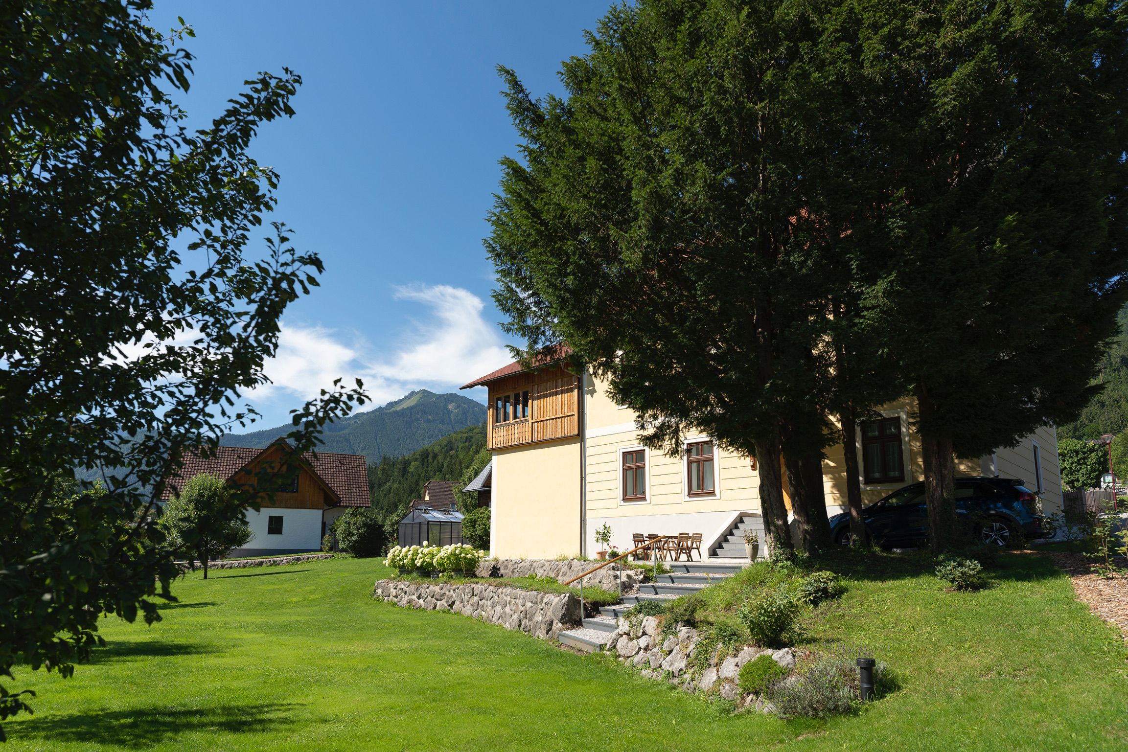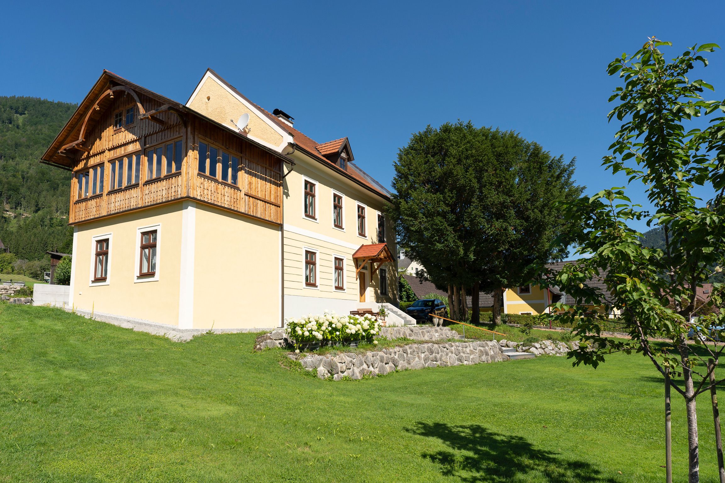 Das Apartment befindet sich in einem 2021 komplett sanierten ehemaligen Forsthaus in ruhiger Lage, nur etwa 5 Gehminuten vom Ortszentrum Hollenstein an der Ybbs entfernt.