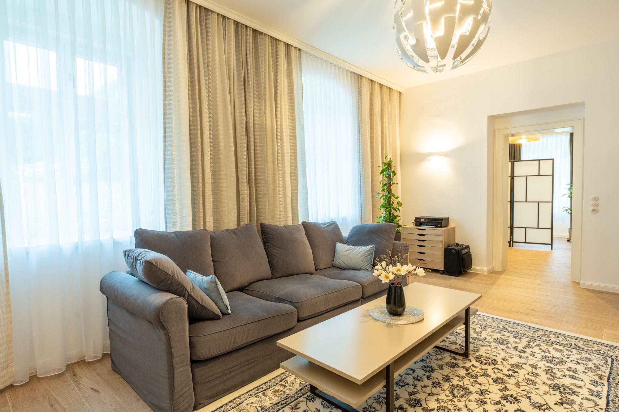 Moderne Ausstattung und hoher Komfort sorgen für einen entspannten Aufenthalt: Glasfaser-WLAN, 55" Flat-TV, voll ausgestattete Küche inklusive