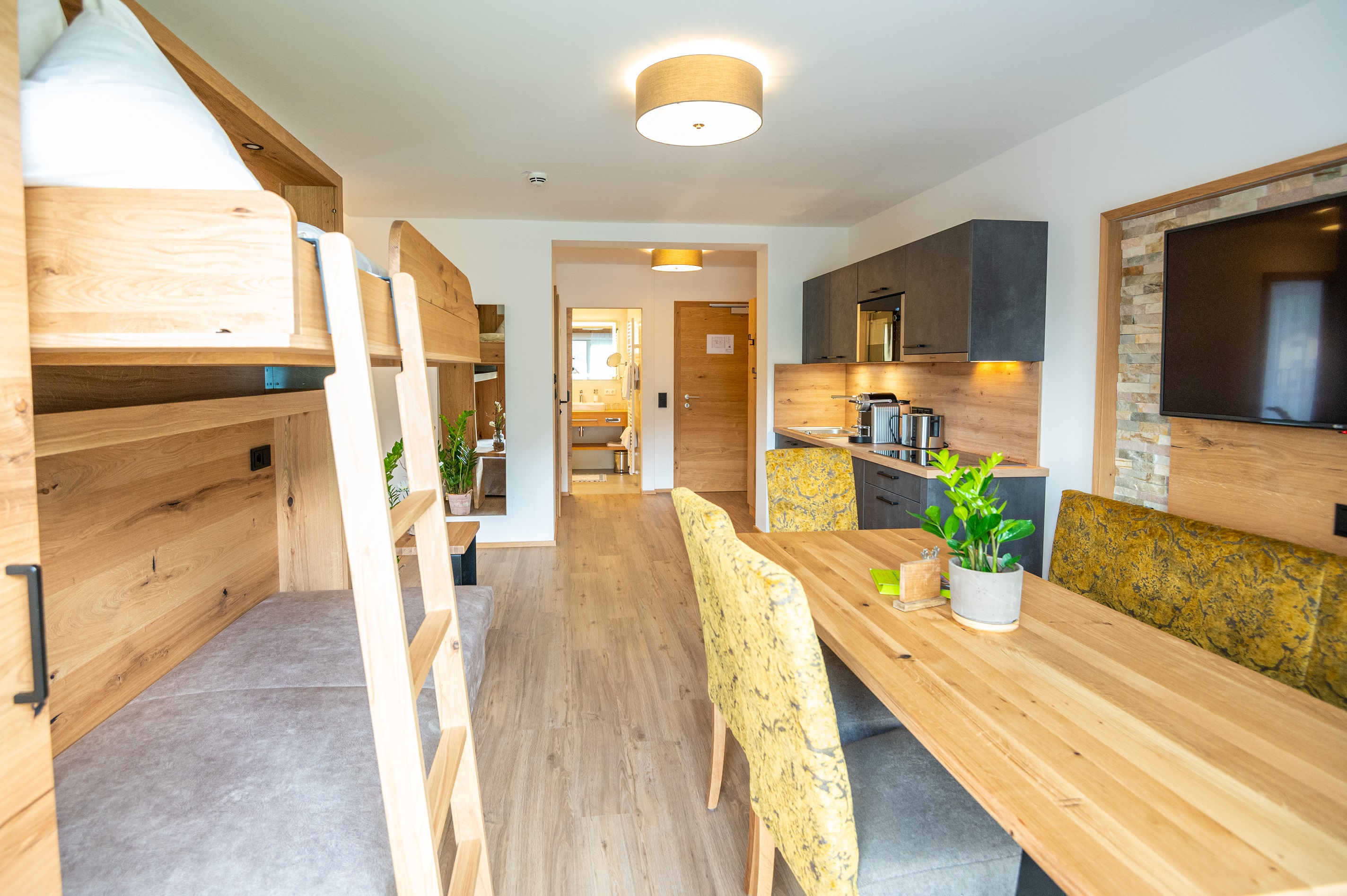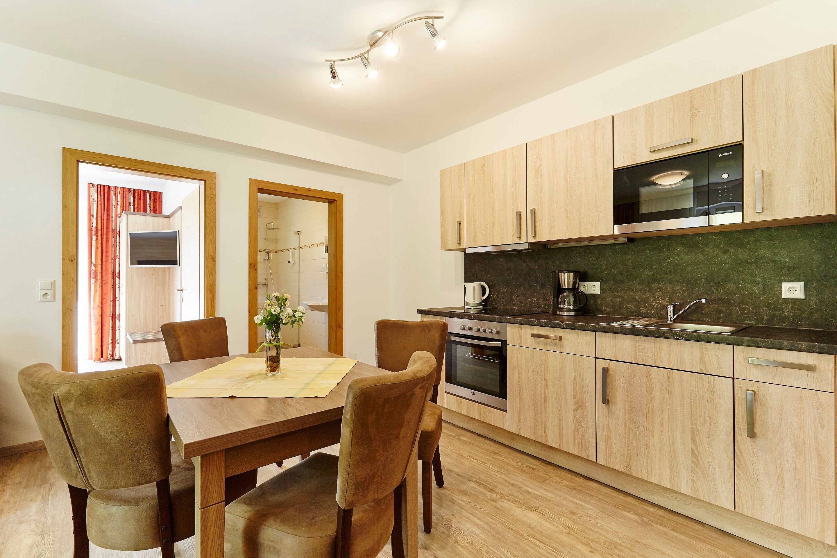 Alle Appartments ausgestattet mit Küche, Mikrowelle, Kühlschrank, teilweise Backofen, Flat TV, Balkon, Couch, Bad und WC.