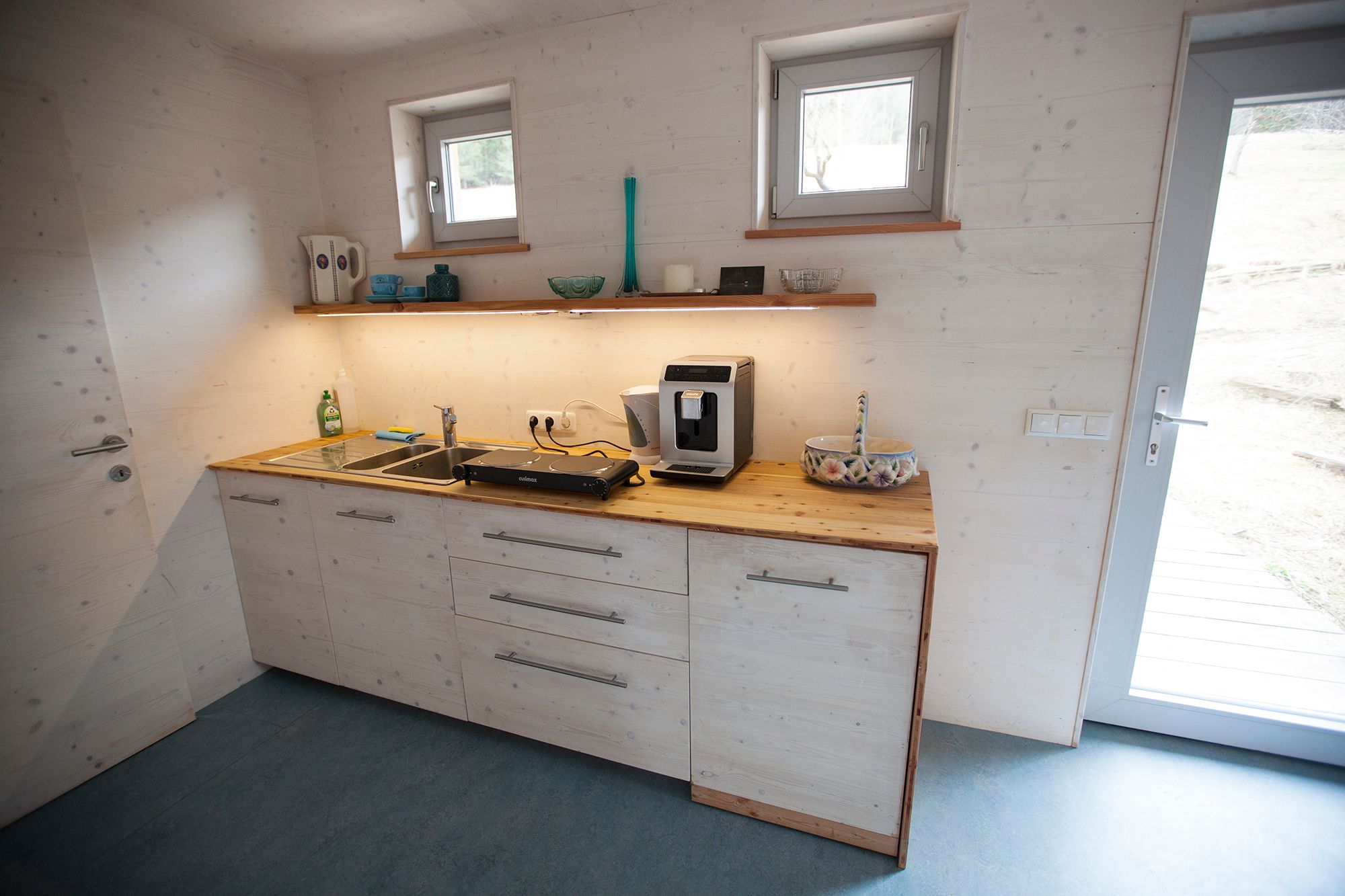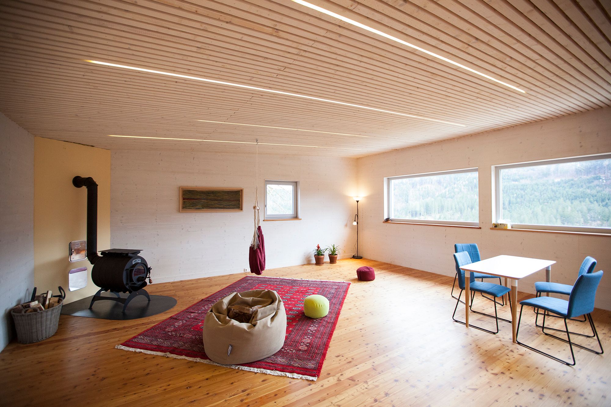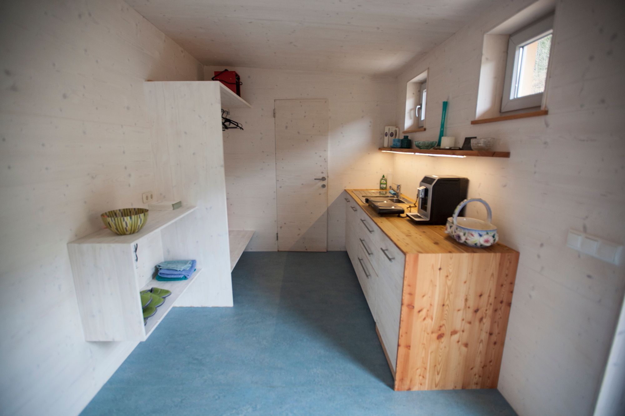 Das ist ein atemberaubender Platz für Menschen, die wirklich Ruhe und Natur wollen, weit weg von allem anderen. Wiese, Wald, Frischluft und Berge. Das Appartement ist auf einem Permakultur-Bauernhof, alleine mitten auf einer großen Lichtung. Es besteht aus einem 70m2 Raum mit Holzboden, neuem Holzofen und Aussicht auf die Berge, sowie einem Badezimmer, einer Wohn- und Eßecke und einer Küche.