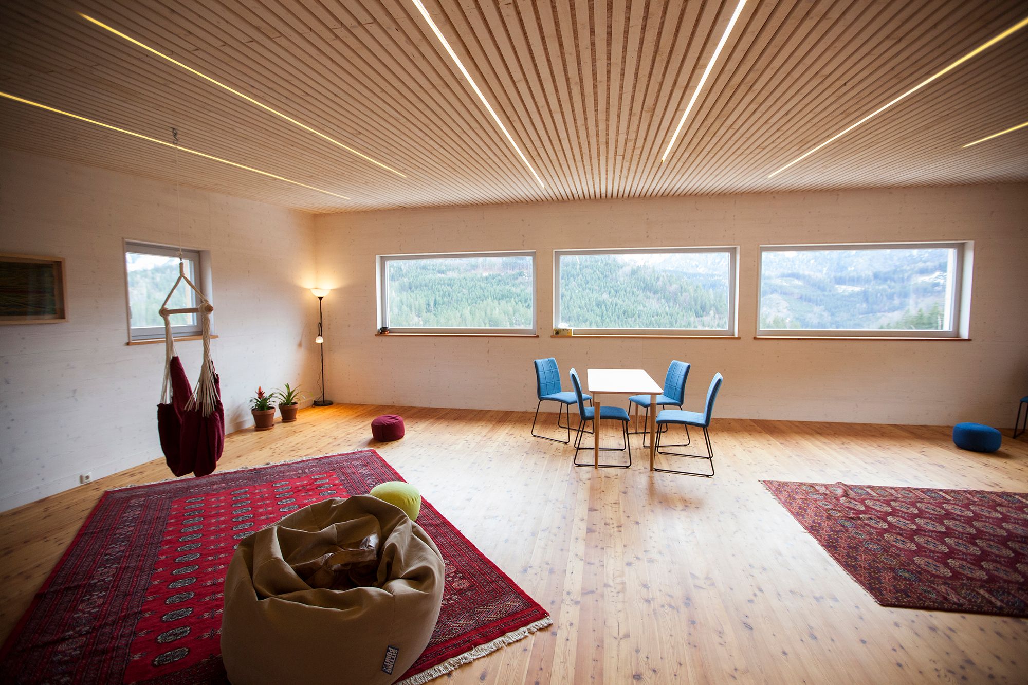 Die Fenster gehen in den Süden, man hat ein Panorama über das Tal auf die Berge.