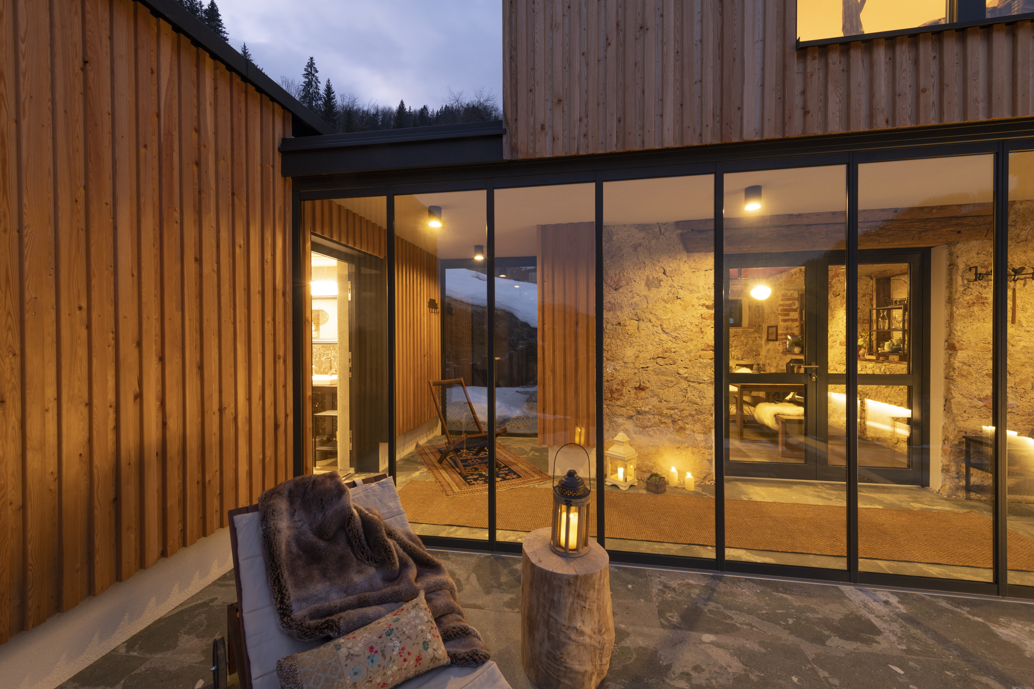 Mit Blick in die Ybbstaler Alpen befindet sich am Waldesrand das Chalet Alte Schmiede. Judith und Mario Huber, Bio-Bergbauern, haben mit Feingefühl die aus Stein gebaute Hausschmiede (17. Jhd.) zu einem Feriendomizil ausgebaut. Geschmackvoll ausgestattete 100 m2 bieten mit Wohn-Schlafhaus, Badehaus, Sauna, Hot Tub, Wintergarten und Terrasse Platz für entspannte Urlaubstage. Das Wohlfühl-Konzept aus Holz, Stein und Beton, Tradition und Zeitgeist ist „Architektur für die Seele“. Ein Natur-Juwel als Rückzugsort für alle die auf der Suche nach Entschleunigung sind!