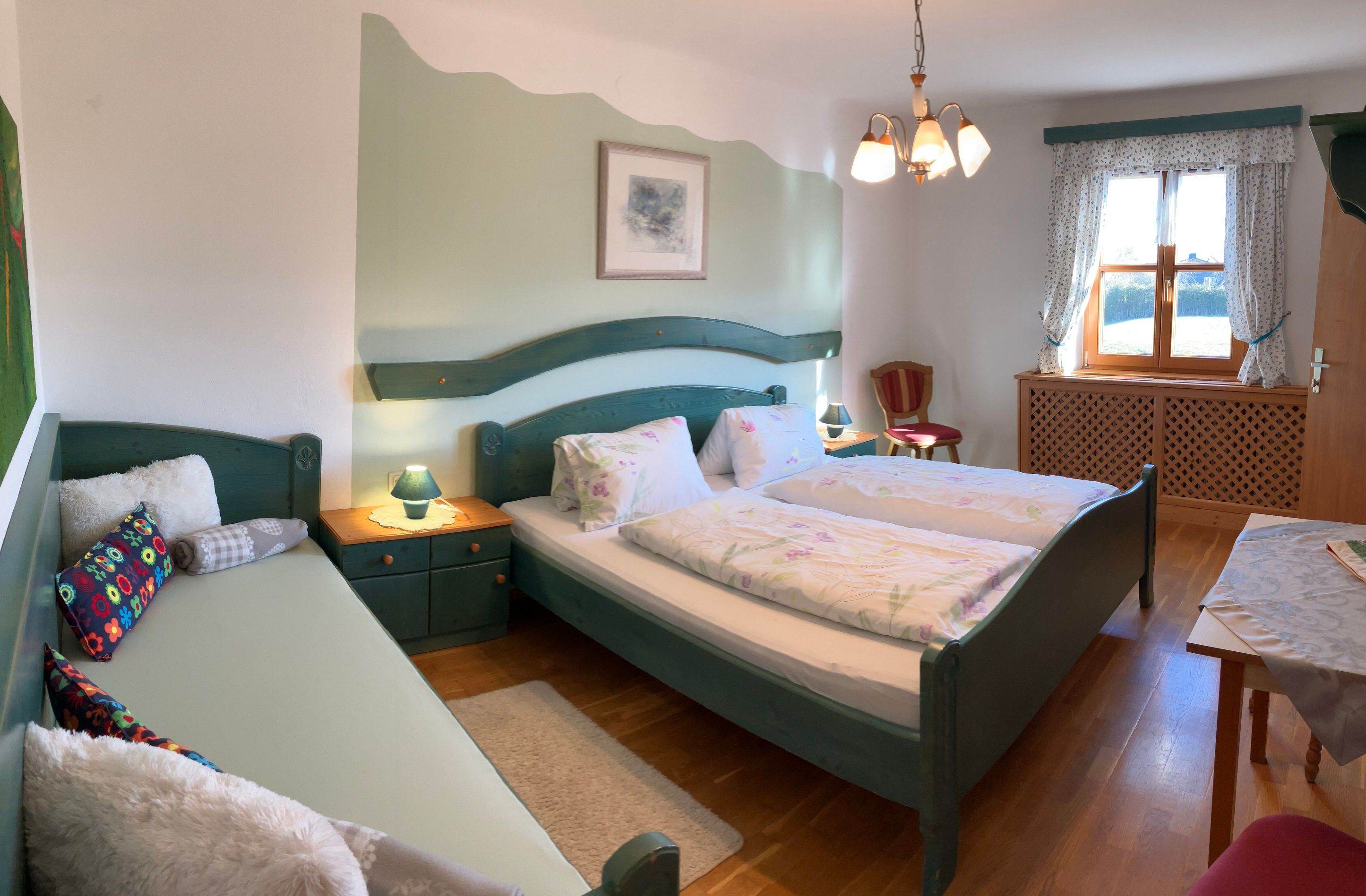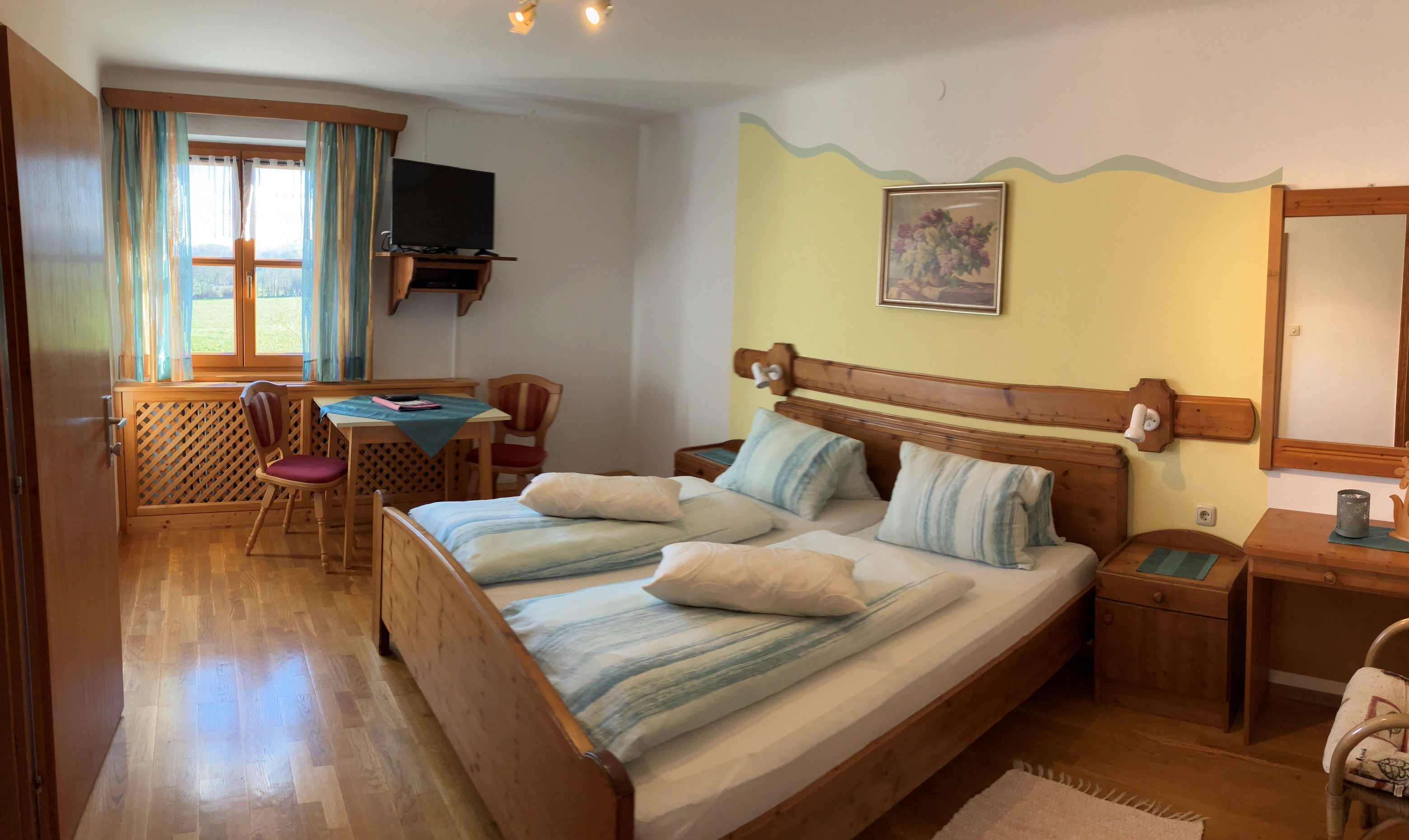 Der traditioneller Vierkanthof befindet sich in Steinakirchen, im sanft-hügeligen Alpenvorland. Die Gästezimmer verfügen über eine sonnige Terasse mit Blick auf die kleine Erlauf.