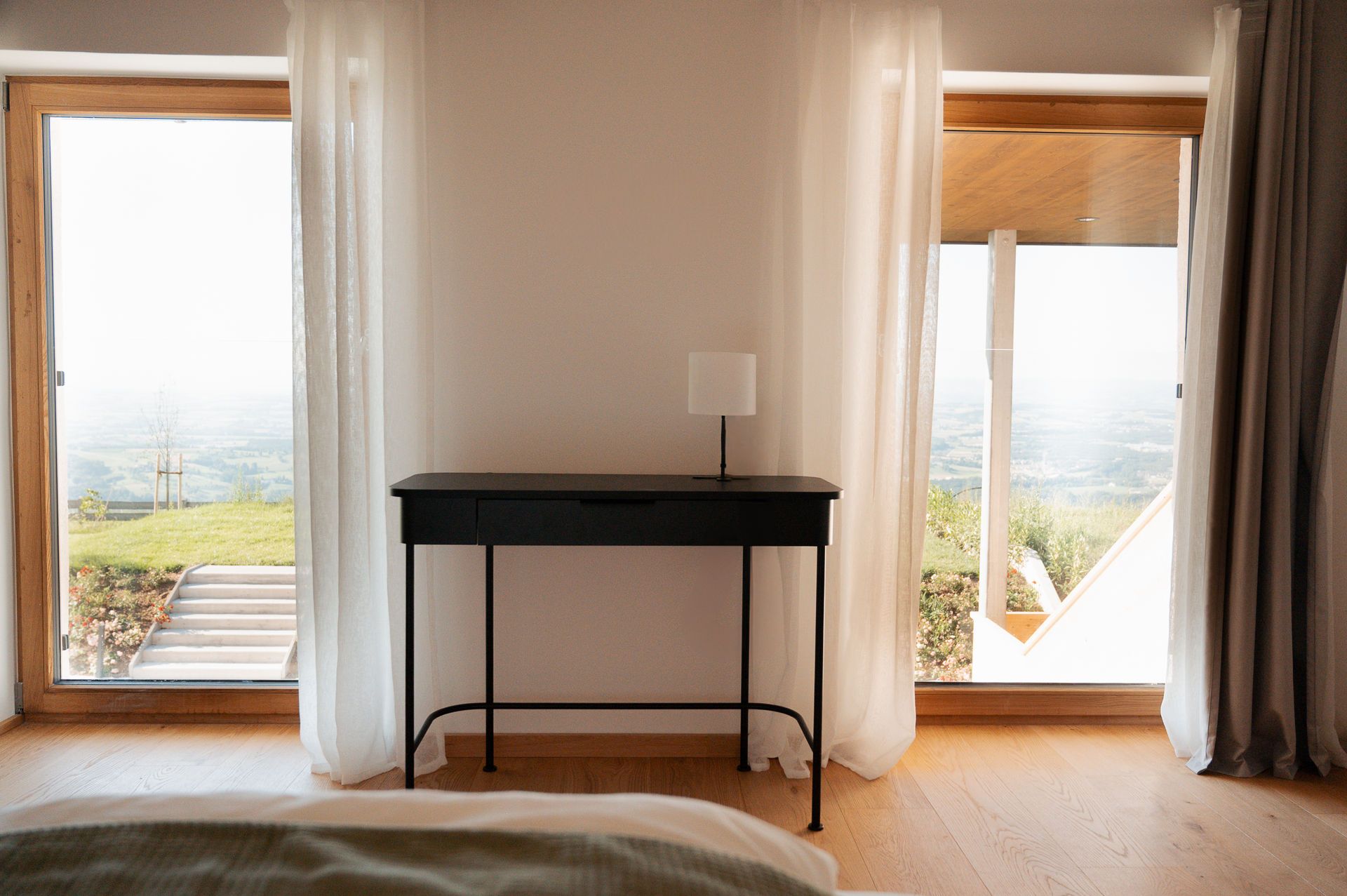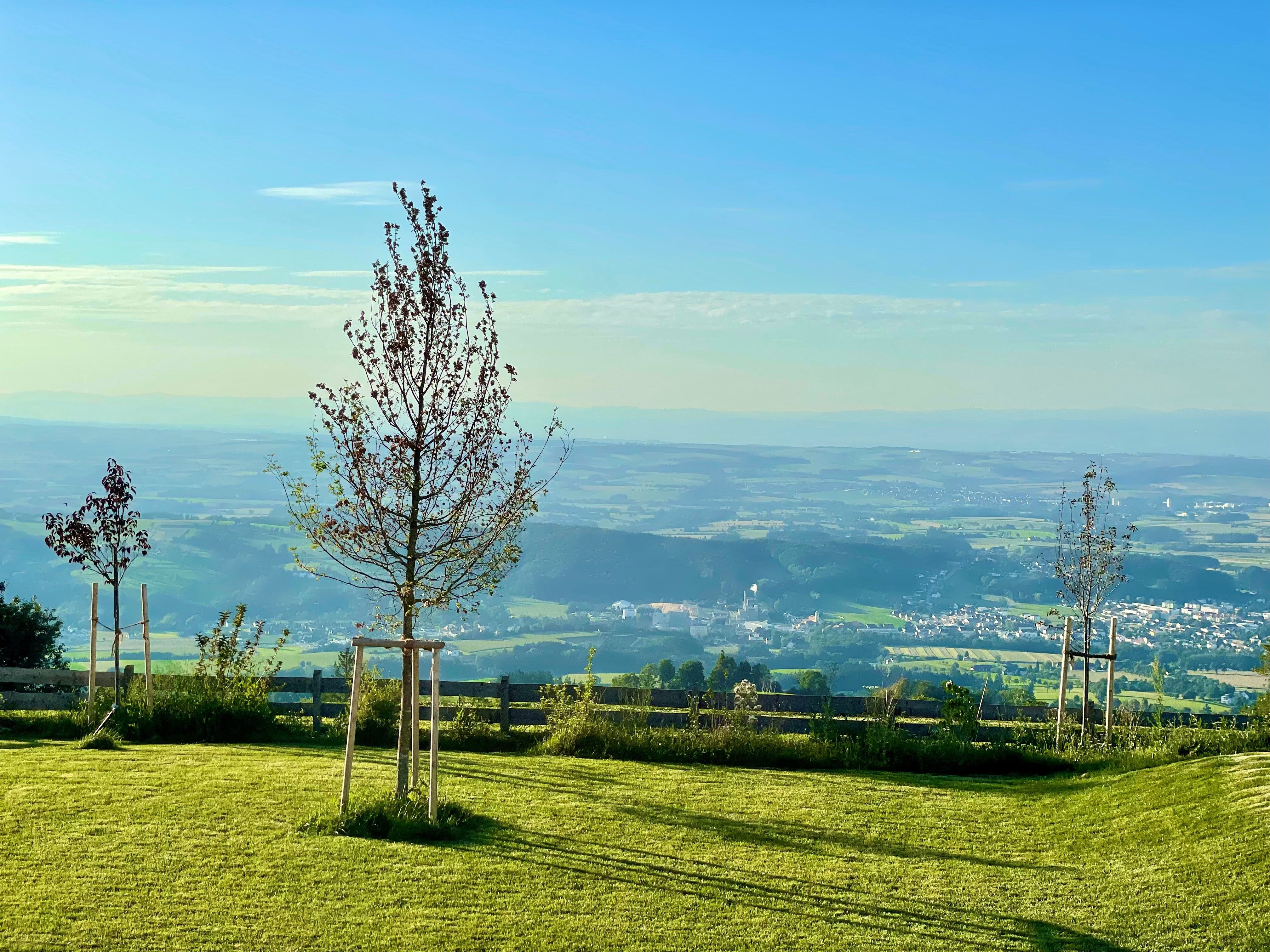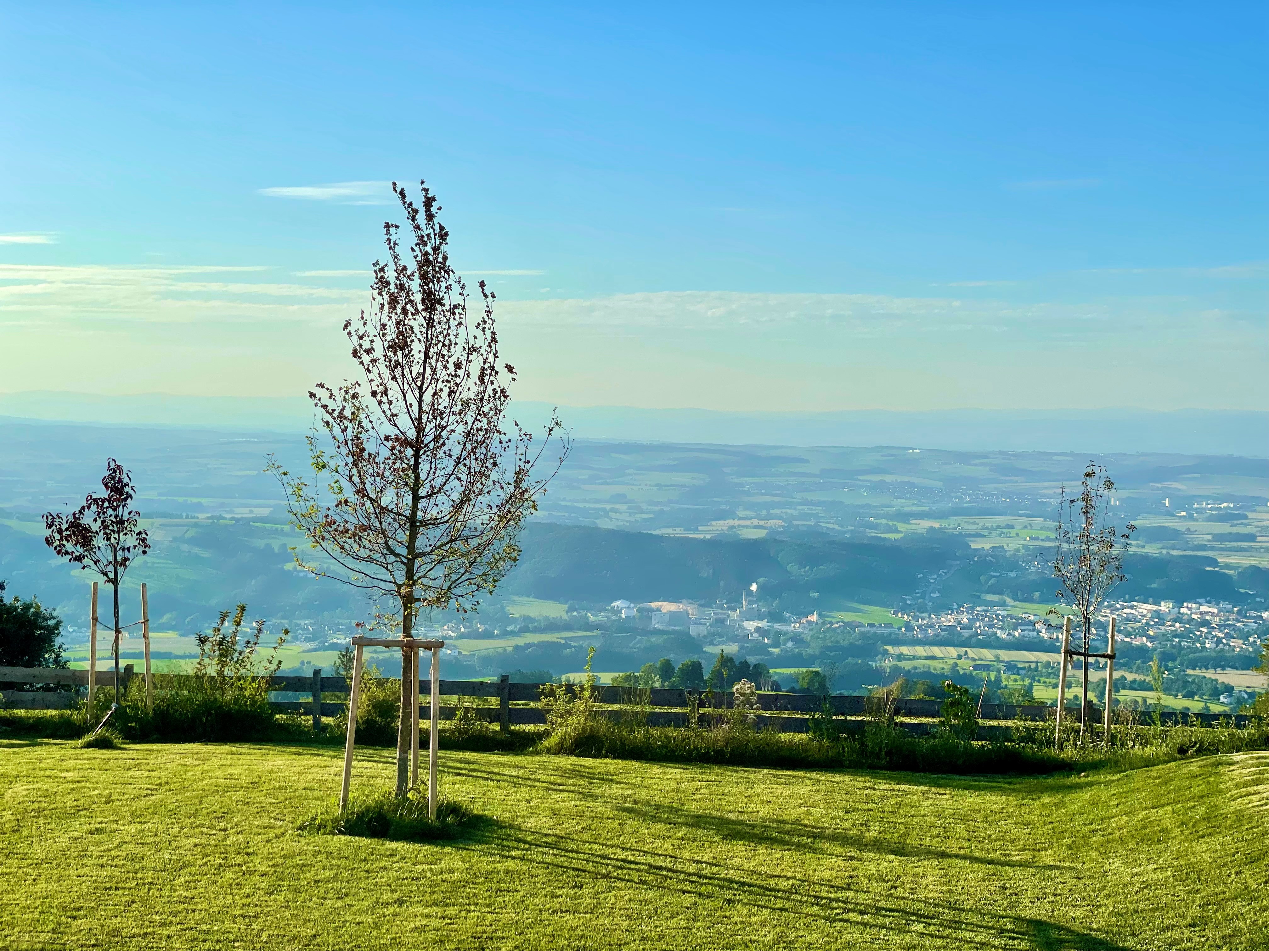 Das Gut Herzogberg liegt in ruhiger Alleinlage am Sonntagberg und eröffnet von allen Zimmern aus weite Ausblicke auf die Voralpen, den Ötscher oder bis nach Linz. Besonders stimmungsvoll sind die Sonnenuntergänge, die an einen Abend am Meer erinnern – nur eben mitten im Mostviertel.