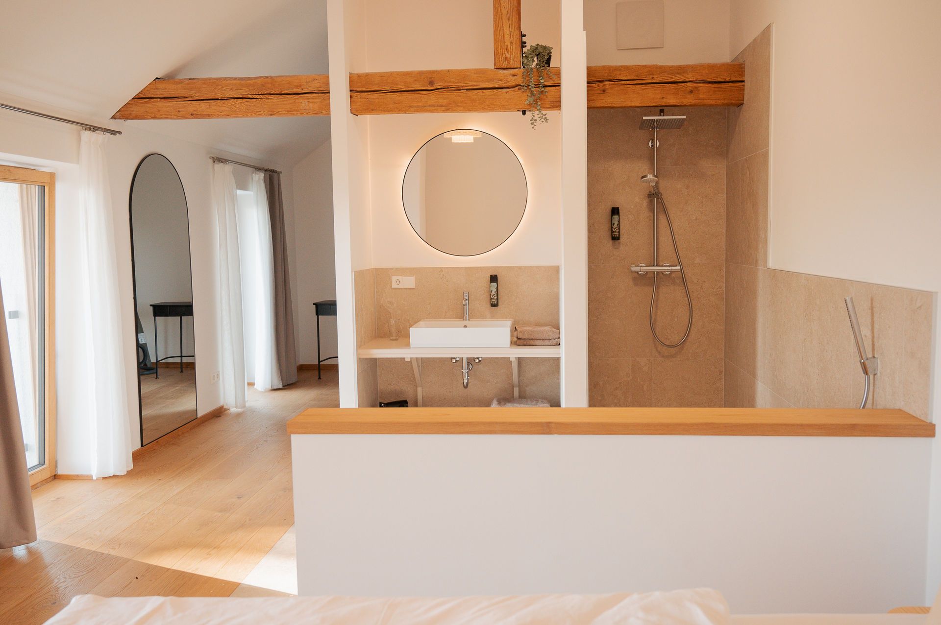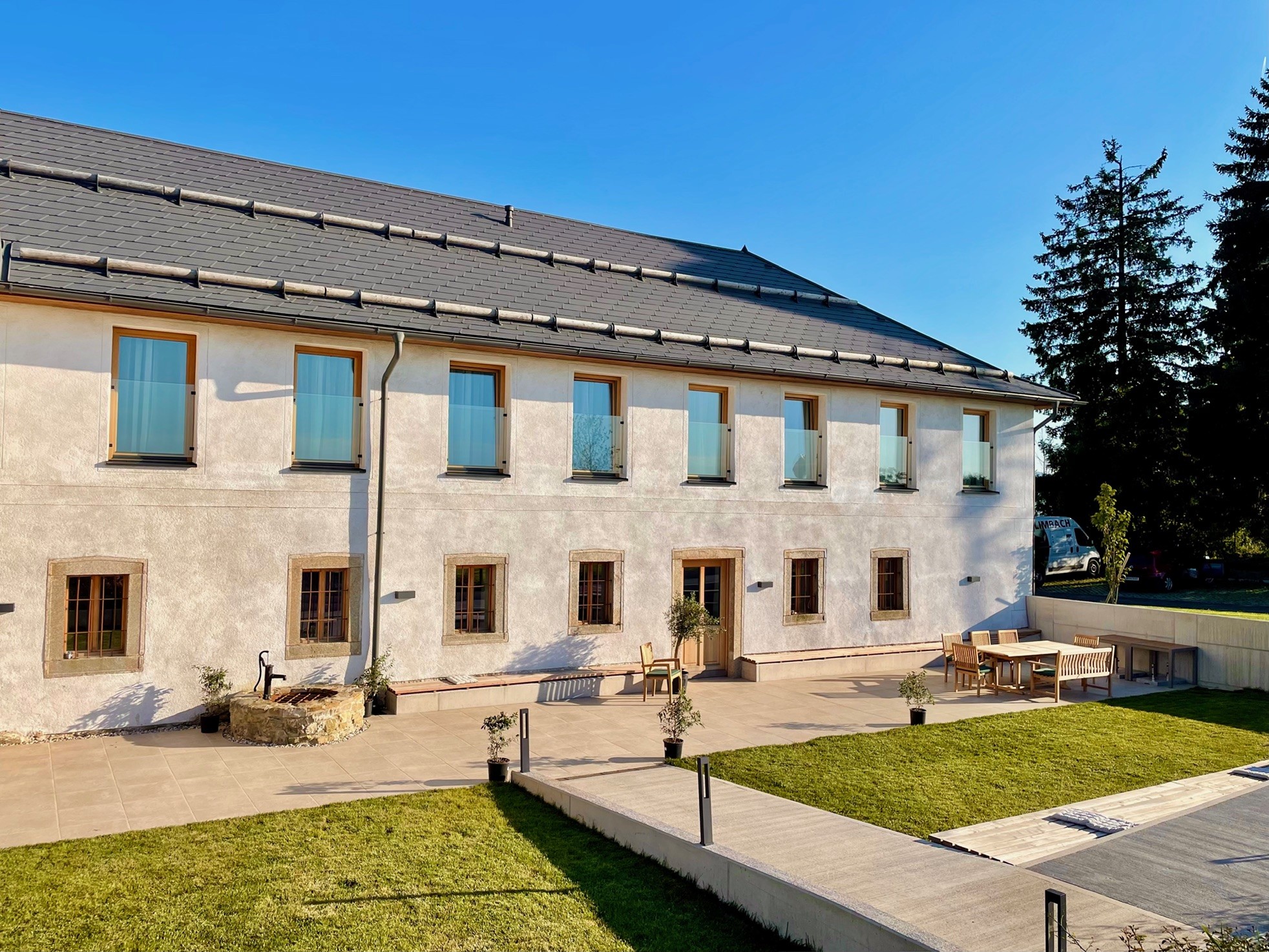 Heute verbindet Gut Herzogberg seine historische Substanz mit zeitgemäßem Komfort. Die Zimmer sind individuell gestaltet und laden mit ihrem freien Blick in die Landschaft zum Innehalten und Abschalten ein.