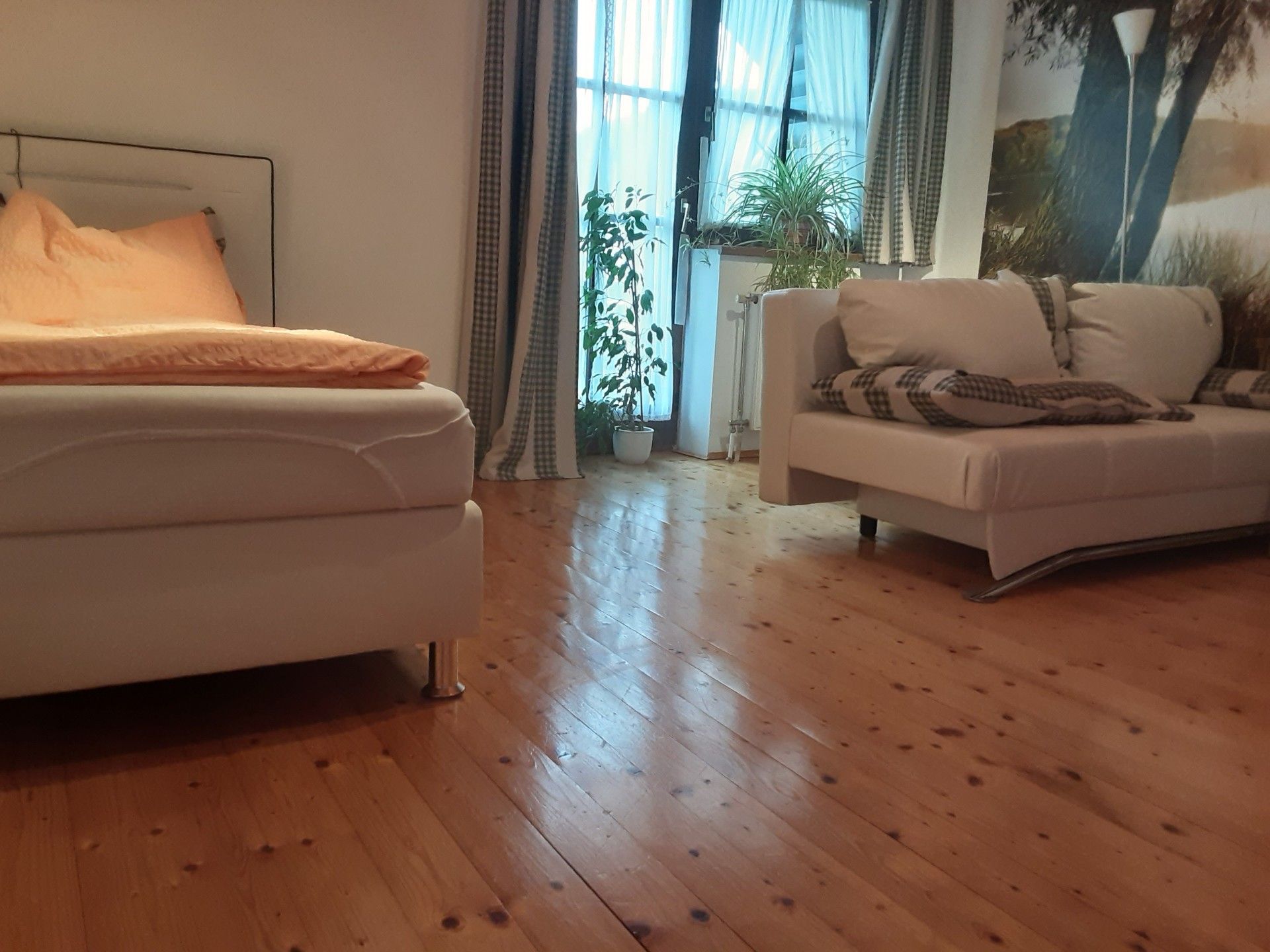 Die Ferienwohnung bietet Platz für bis zu drei Personen und kombiniert zentrale Lage mit praktischem Komfort: