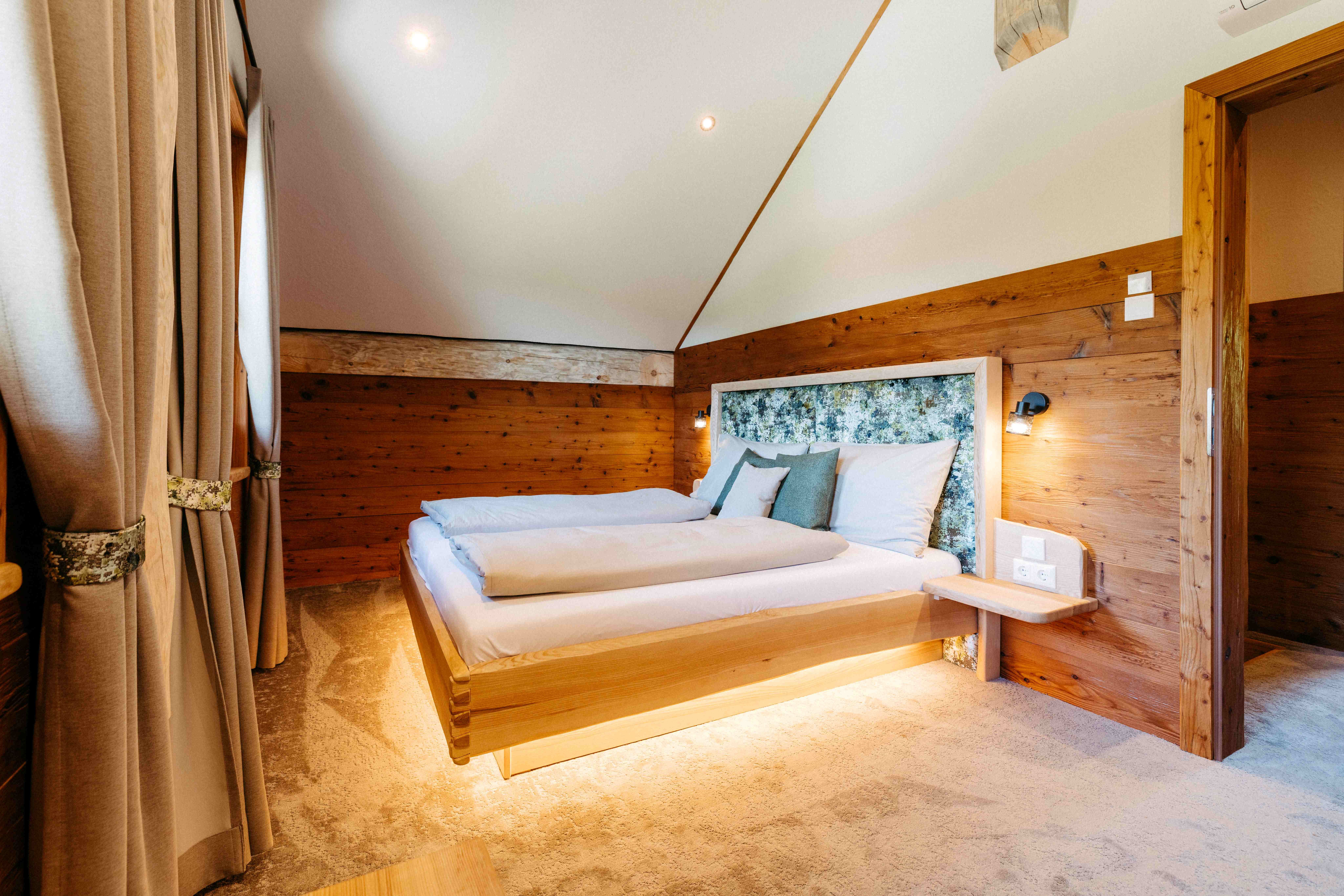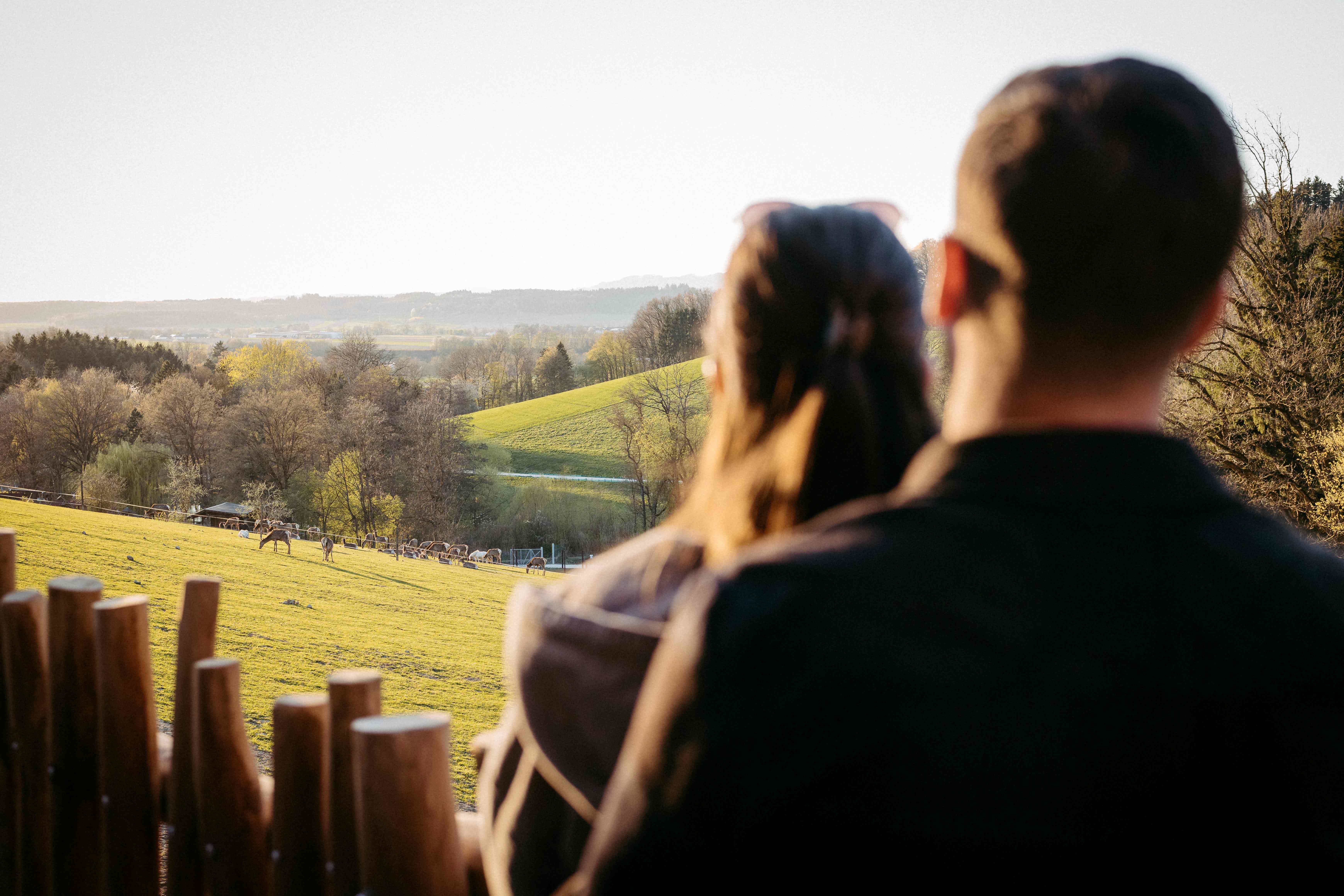 Übernachtet wird ganz nach Wunsch: im Haupthaus in Doppel-, Familien- oder Mehrbettzimmern oder in einer der sechs Wildpark Lodges. Die 2026 neu eröffneten Lodges in Holzblockbauweise sind mitten im Wildpark eingebettet. Großzügige Räume, hochwertige Materialien und der Blick ins Grüne mit den umliegenden, eingezäunten Gehegen schaffen eine besondere Atmosphäre. Von der gemütlichen Fensterbank aus lassen sich die Tiere in aller Ruhe beobachten.