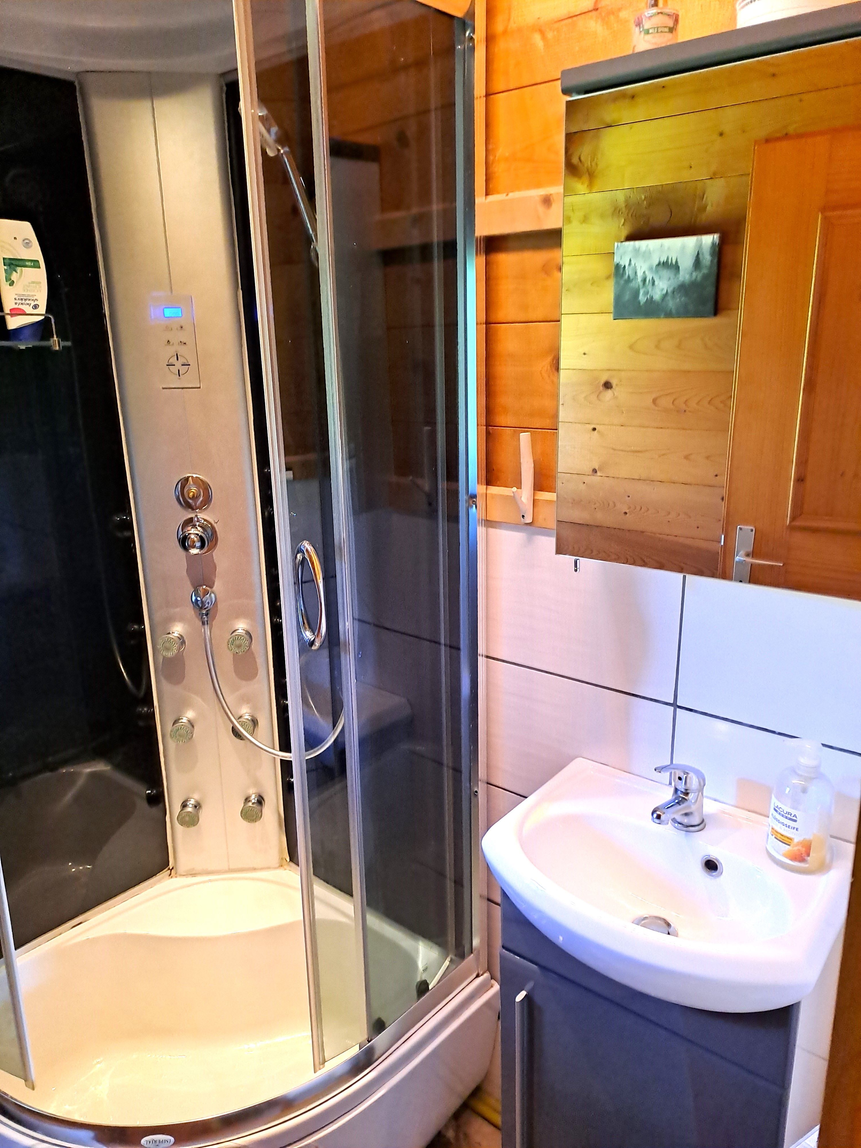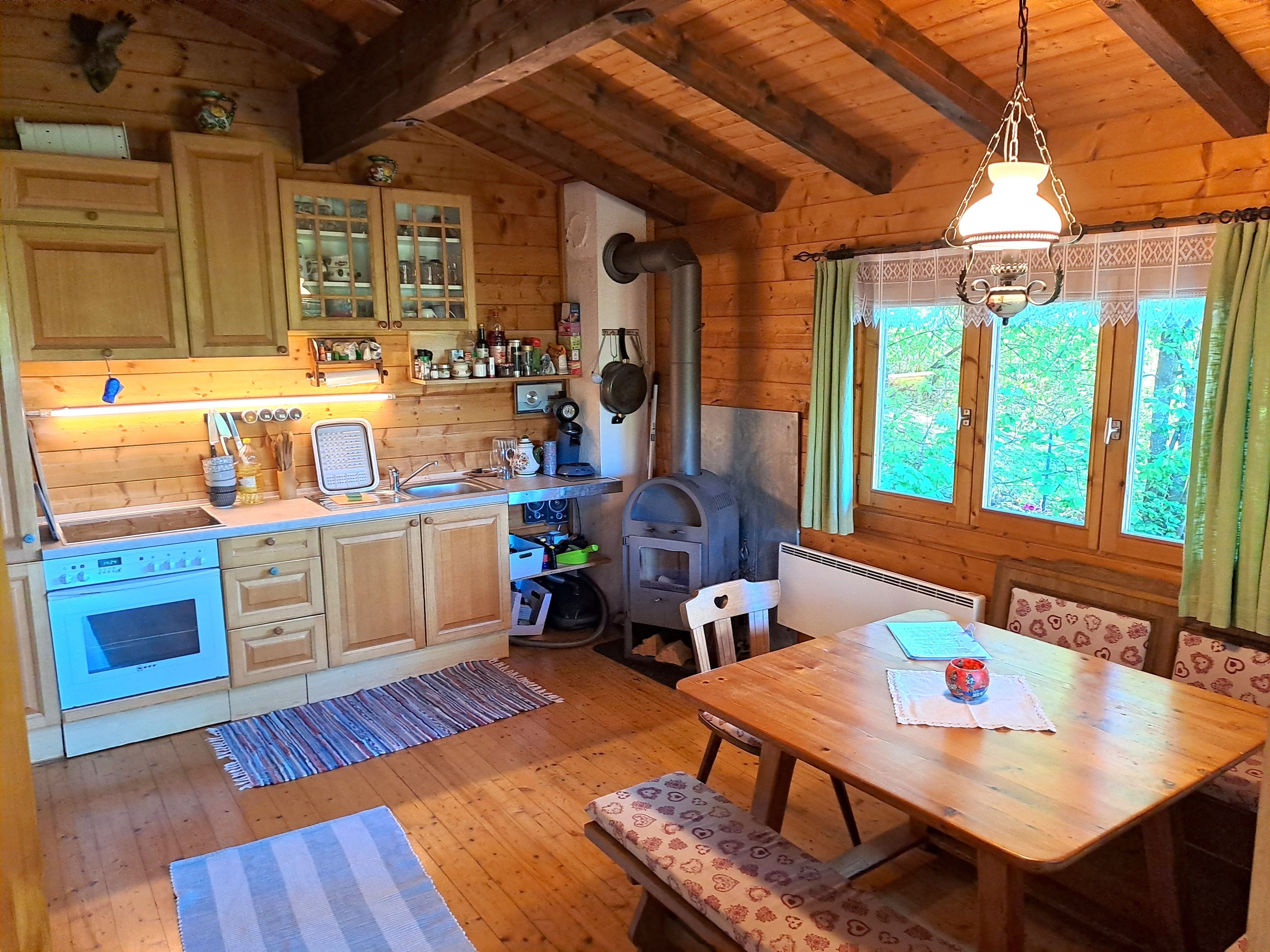 Komplett ausgestattet mit Geschirr zum Kochen, Schwedenofen, Kaffeemaschine, Dusche, WC, Terrasse, Garten mit 1000m² Grünfläche, Lagerfeuerstelle,Griller und vielem mehr.