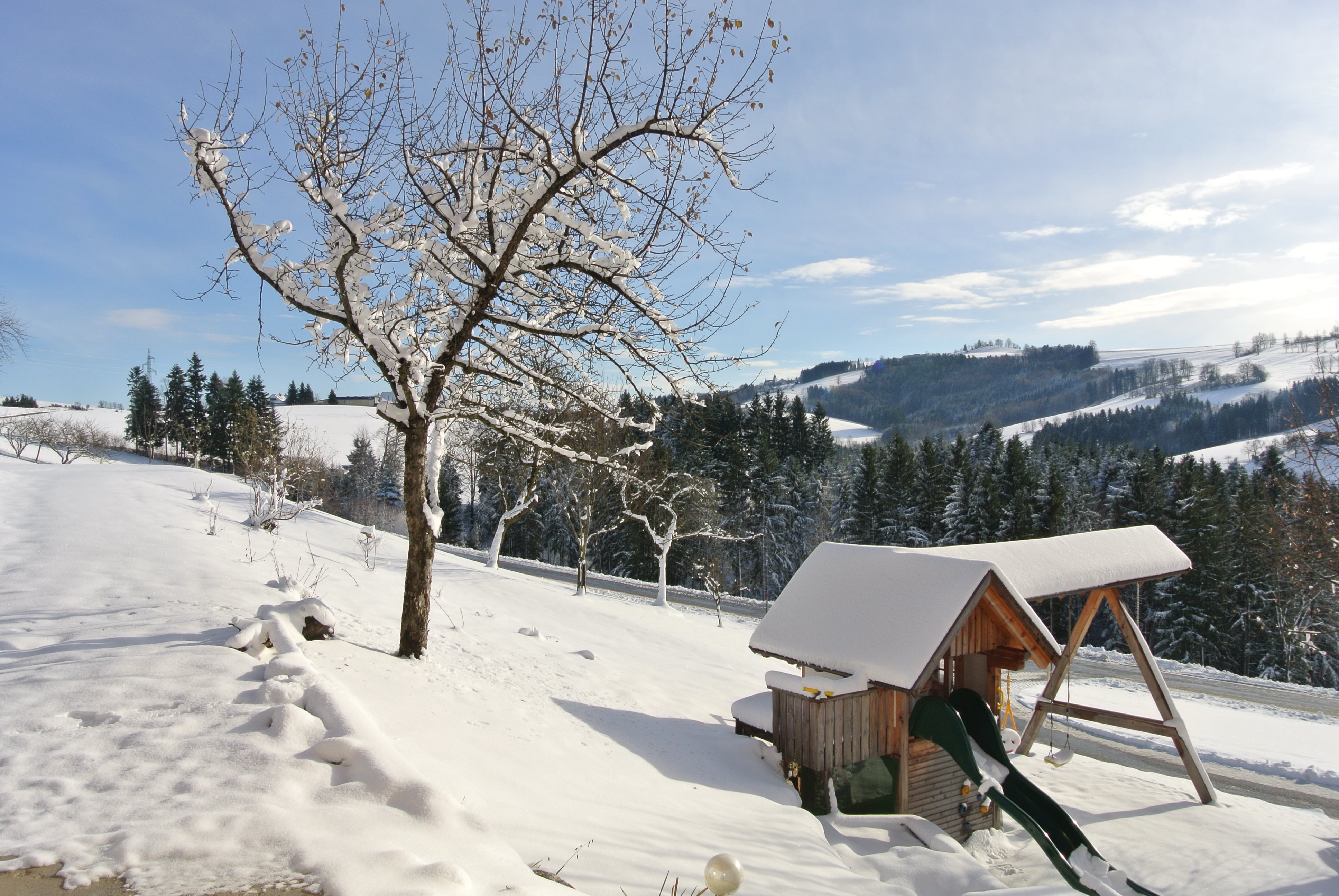 Im Winter können Sie je nach Schneelage den Spaß im Schnee frönen und Schneemann bauen, Winterwanderung, Schlitten-, Bobfahren oder einfach nur die Ruhe der winterlichen Landschaft genießen. Mit Gesellschaftsspielen und Büchern können Sie einen gemütlichen Winterabend verbringen.