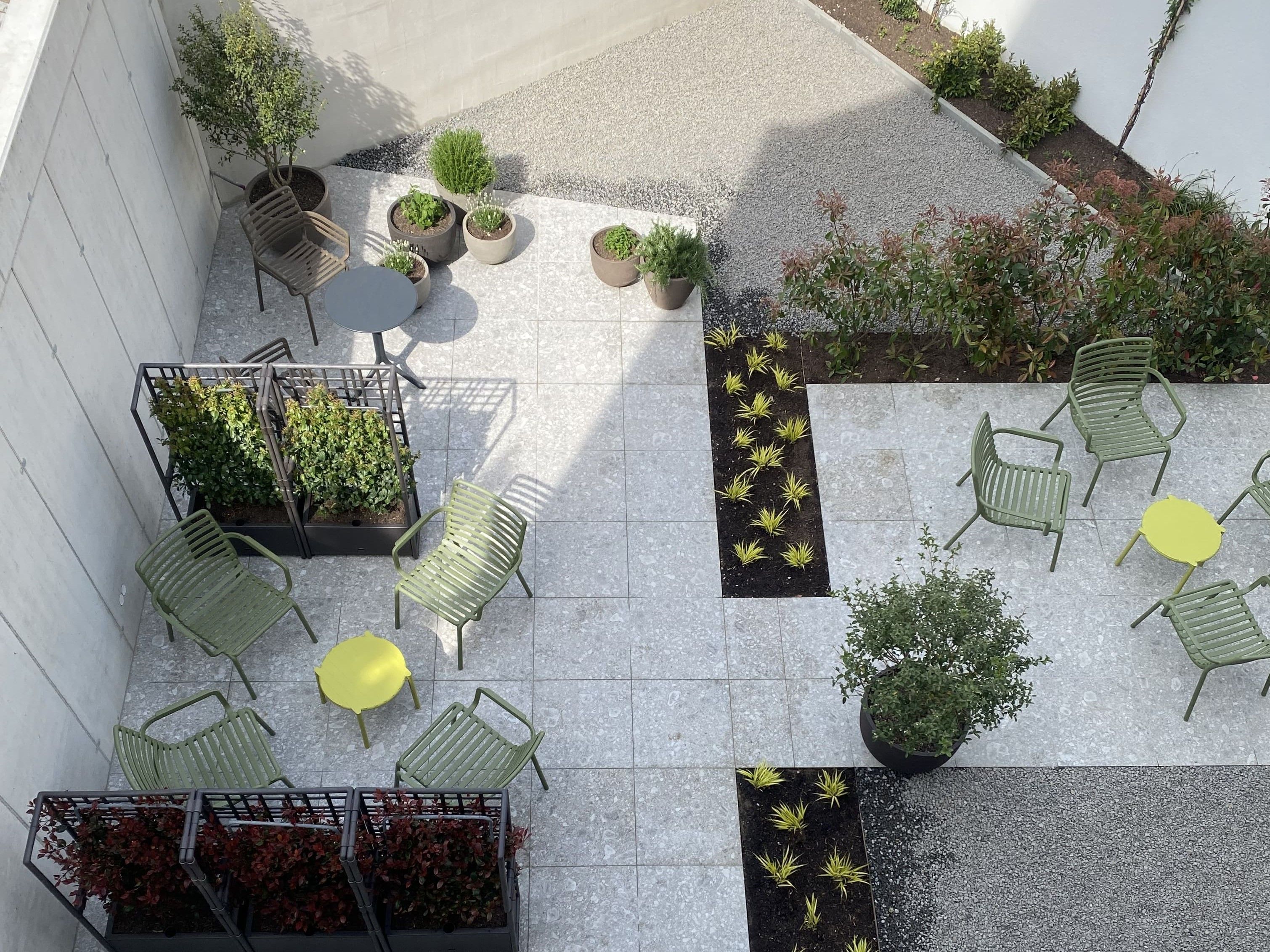 43 m Wohnfläche je Serviced Apartment, 2 voll ausgestattete Zimmer, Wohnküche, Bad, frei zugängliche Grün-Oase im Hof, Sämtliche Schlafzimmer der Apartments mit Blick auf den ruhigen, begrünten Innenhof.