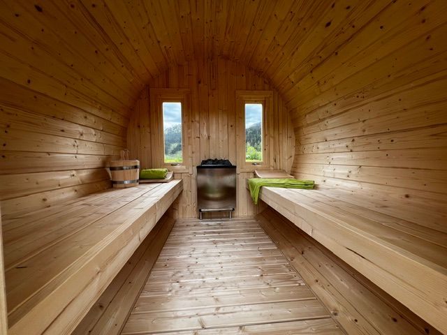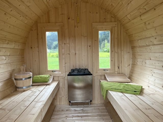 Entspannungsmöglichkeiten bieten eine Fasssauna und Liegestühle. In unserem Aufenthaltsbereich neben den Sanitäranlagen findet sich eine großzügige Sitzbank, ein Kühlschrank mit Getränken und eine Kaffeemaschine. Kostenfreies WLAN steht am gesamten Gelände zur Verfügung. Ein Zugang zur Ybbs mit Grillmöglichkeit befindet sich direkt neben den Schlafhütten. Darüber hinaus gibt es eine Ladestation für E-Bikes.