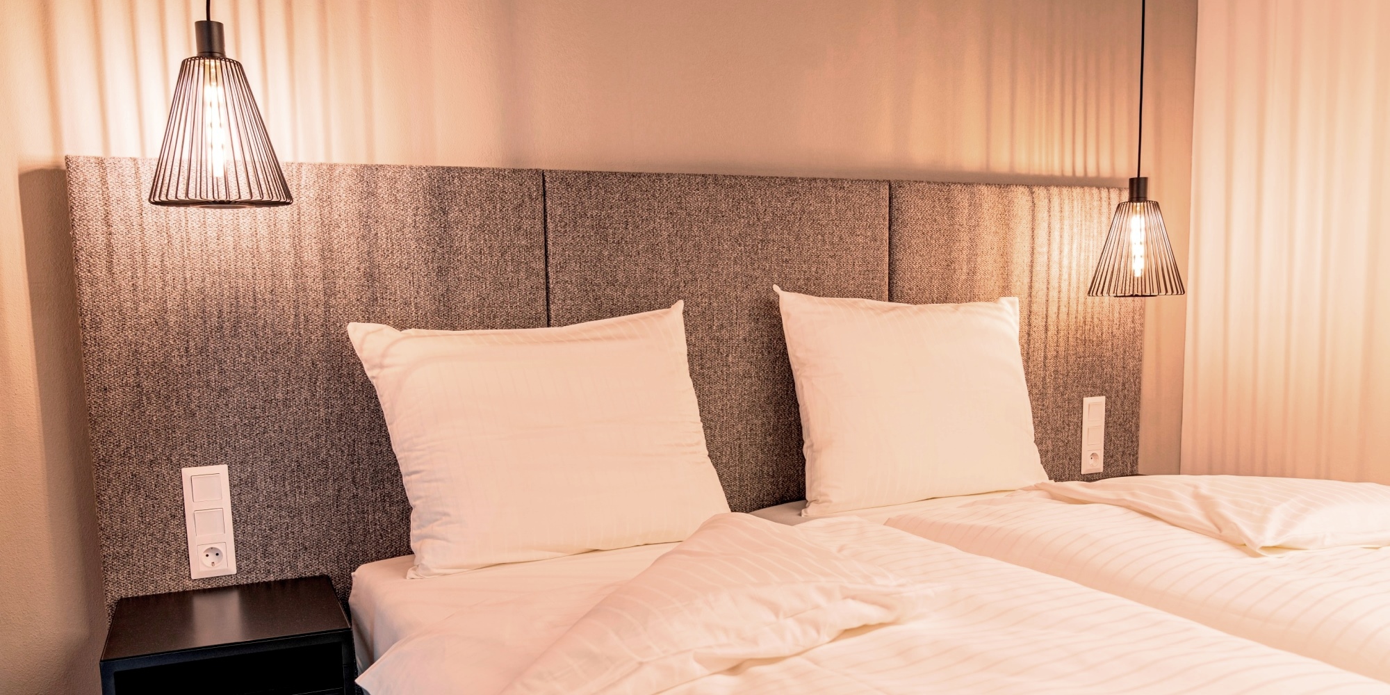 Alle Zimmer mit komfortablen Boxspringbetten, geräumigen Sanitärbereichen, kostenlosem W-LAN, SAT-TV, Fußbodenheizung, hochwertig schallgedämmt. Aufenthaltsbereich mit TV-Lounge (Heiß-/ Kaltgetränke- und Snack- Automat, sowie eine gemütliche Abendsonnen-Raucherterrasse). Frühstücksmöglichkeiten direkt im Haus bei Naturkost Roland, im Nachbargebäude bei Cafe-Bäckerei Fürst, oder in wenigen Gehminuten bei Konditorei Reschinsky.
