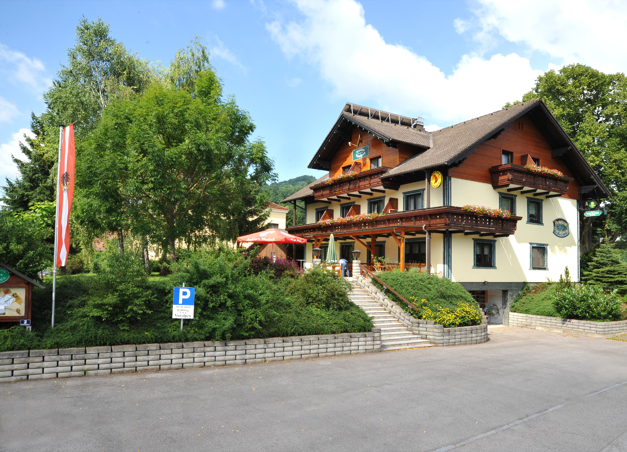 Ein Familienbetrieb, gelegen im Alpenvorland. Unsere Pension liegt im Ortszentrum, aber in ruhiger Lage für Naturliebhaber und Gäste die entspannen und erholen möchten. Gut angelegete Wander- und Radwege. Auch eine Mountainbikestrecke ist vorhanden.