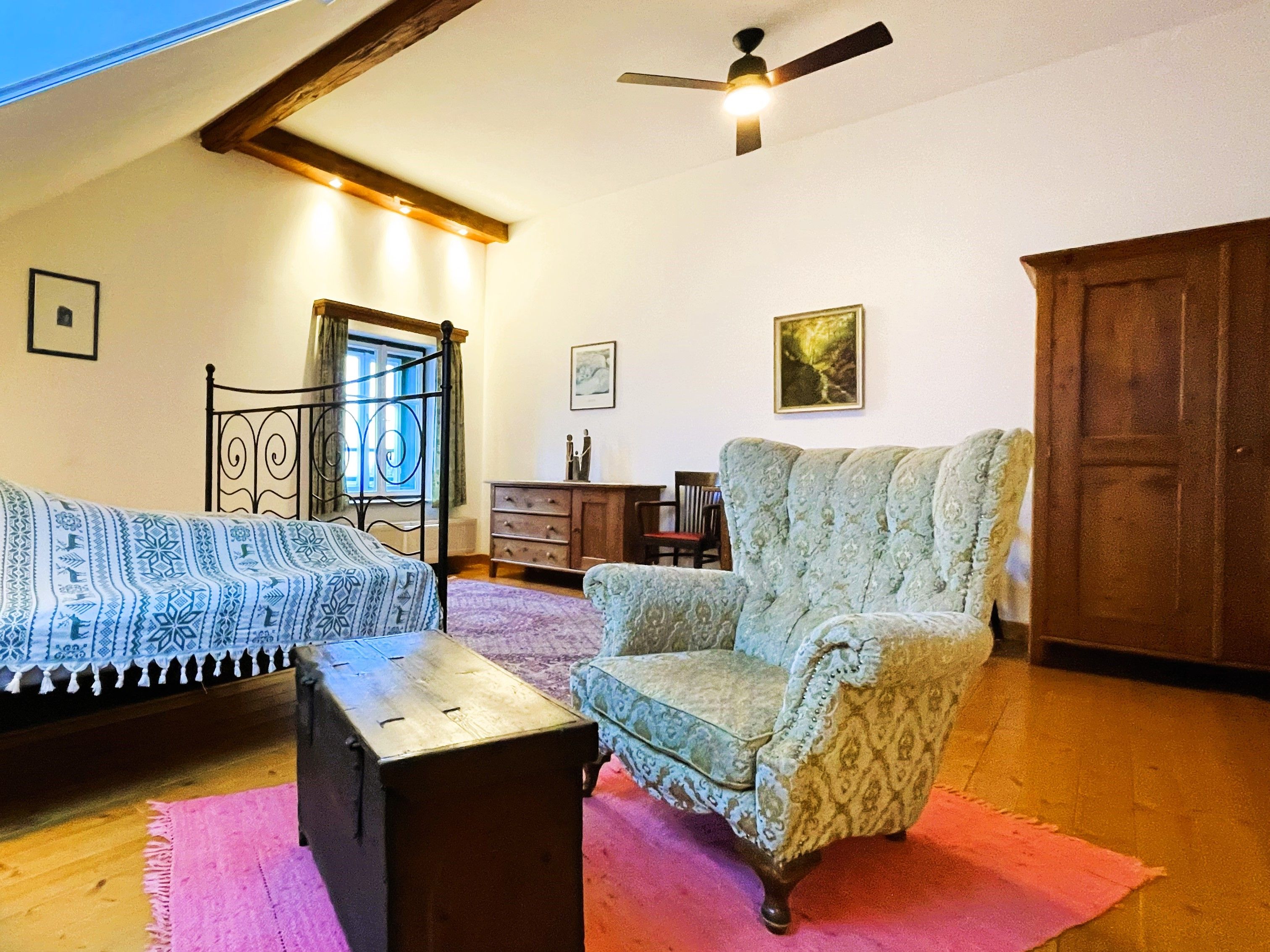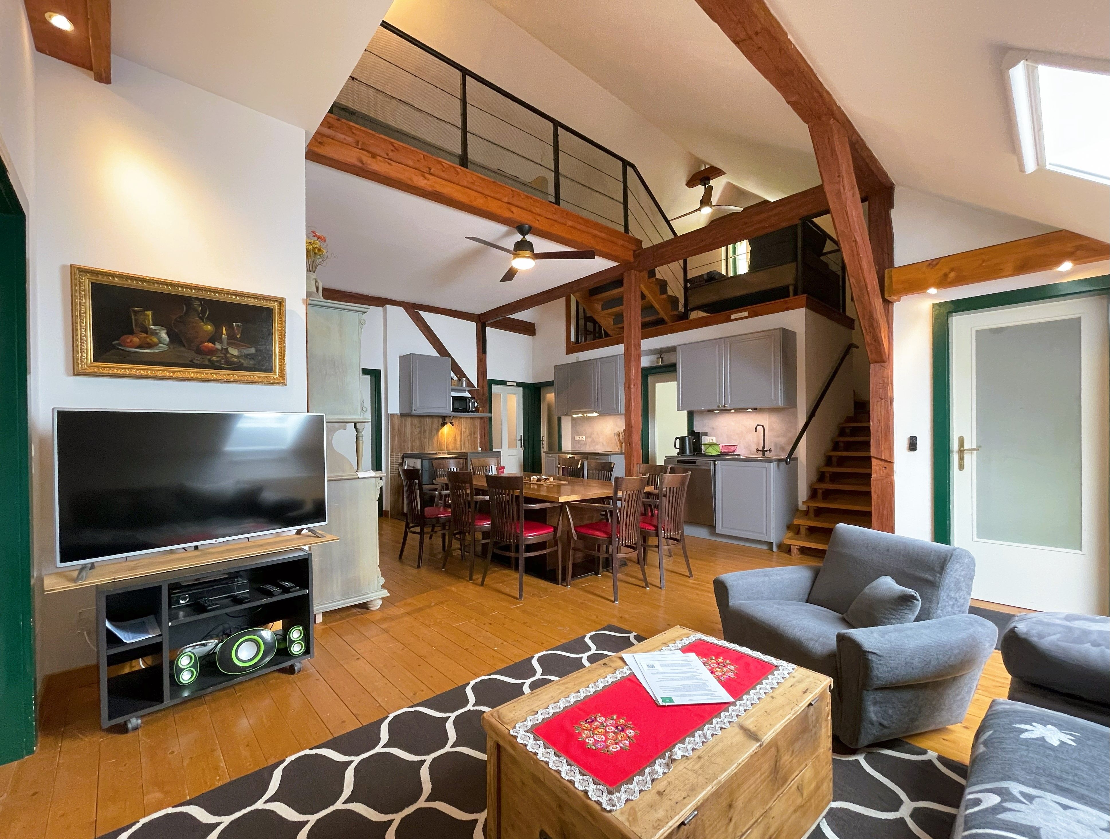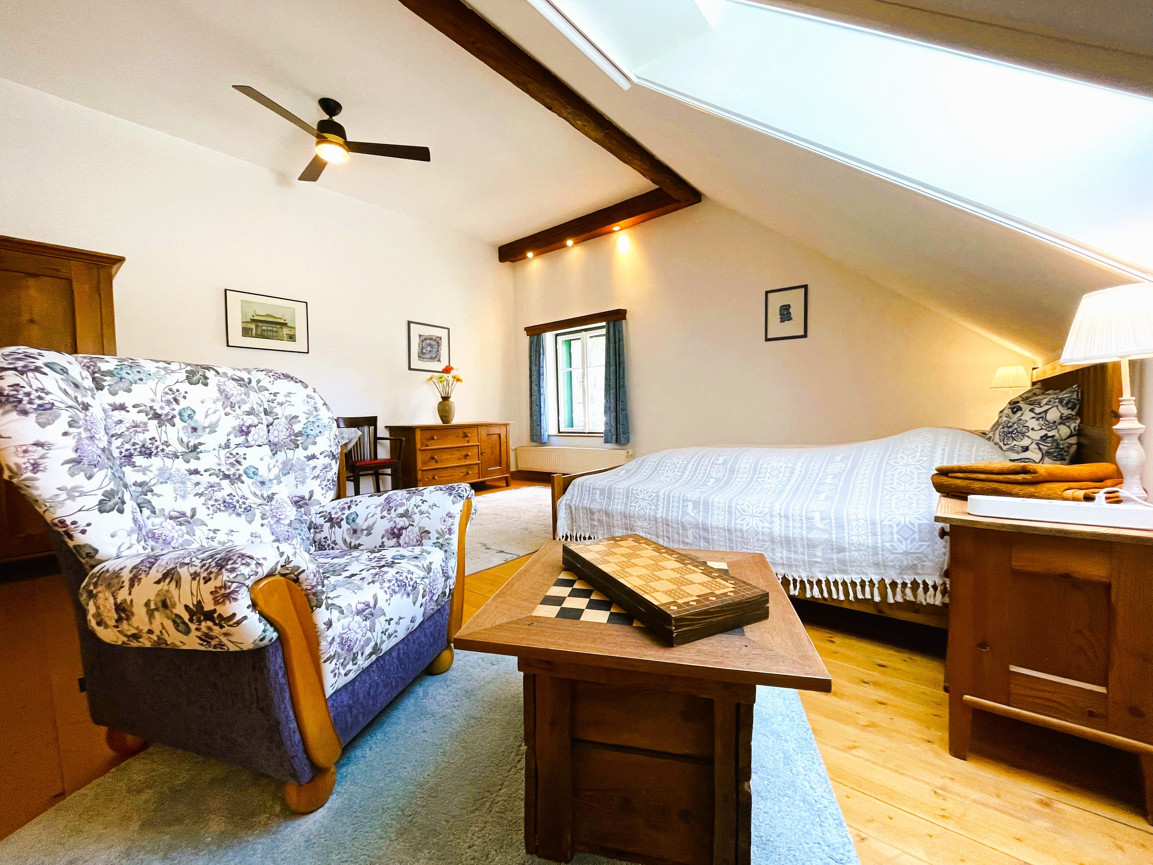 Der großzügige Dachbod’n (70-150m²) eignet sich besonders für Freundes- und Familien-Gruppen bis 10 Personen, die das vielseitige Bergland in alle Richtungen erkunden wollen, denn mit Deiner Buchung erhältst Du zwischen Mai und Oktober die Wilde Wunder Card gratis dazu. Durch die zentrale Lage im Salzatal sind viele Wilde-Wunder-Ausflugsziele nicht weit: Mariazeller Bürgeralpe, Wasserlochklamm, Rafting bei Palfau, Nothklamm, Freizeitpark Landl oder das Mendlingtal. Und nach Deinen Ausflügen kannst Du Dich vor dem knisternden Holzofen beim gemeinsamen Kochen und Essen in der behaglichen Atmosphäre des Dachbod’ns entspannen.