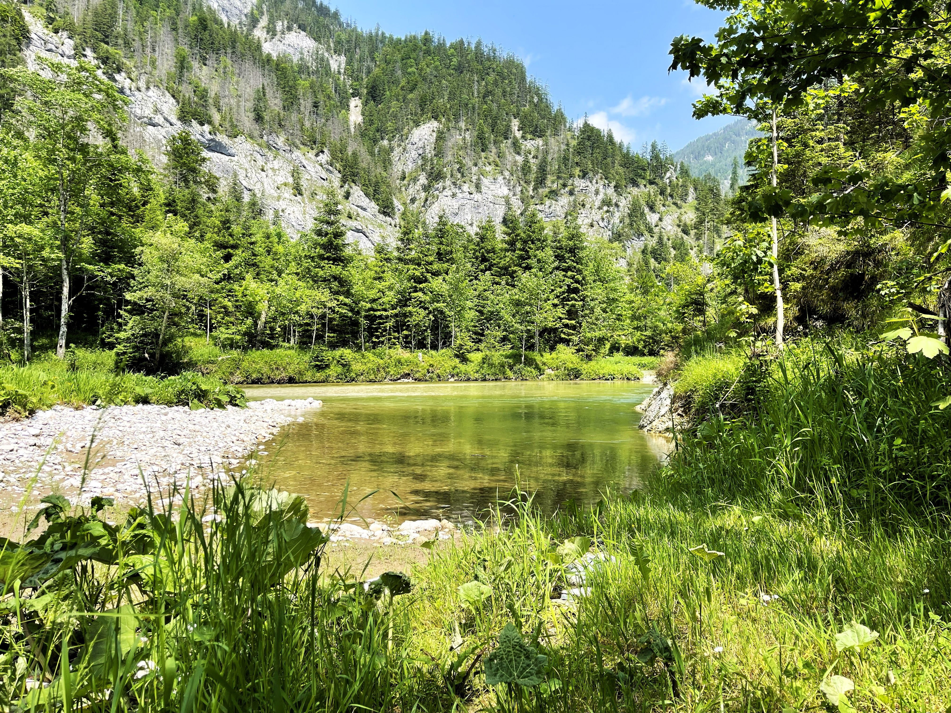 Die Quellhütte steht in Mariazell-Weichselboden am Fuß des Hochschwabs in einer einzigartigen Bergkulisse nur 100m vom Kiesstrand der Salza entfernt und direkt am Ausgang der 10km langen, einsamen Klausgraben-Schlucht. Ob im Hängesessel unter der uralten Esche, im Liegestuhl am Hausbrunnen, unter dem Sternenhimmel am Lagerfeuer oder bei Spaziergängen in der Umgebung – hier lässt sich die Natur in vollen Zügen genießen. Für Ambitionierte ist die Quellhütte ein idealer Ausgangspunkt für den Aufstieg auf Hochschwab, Hochstadl oder zur Graualm.