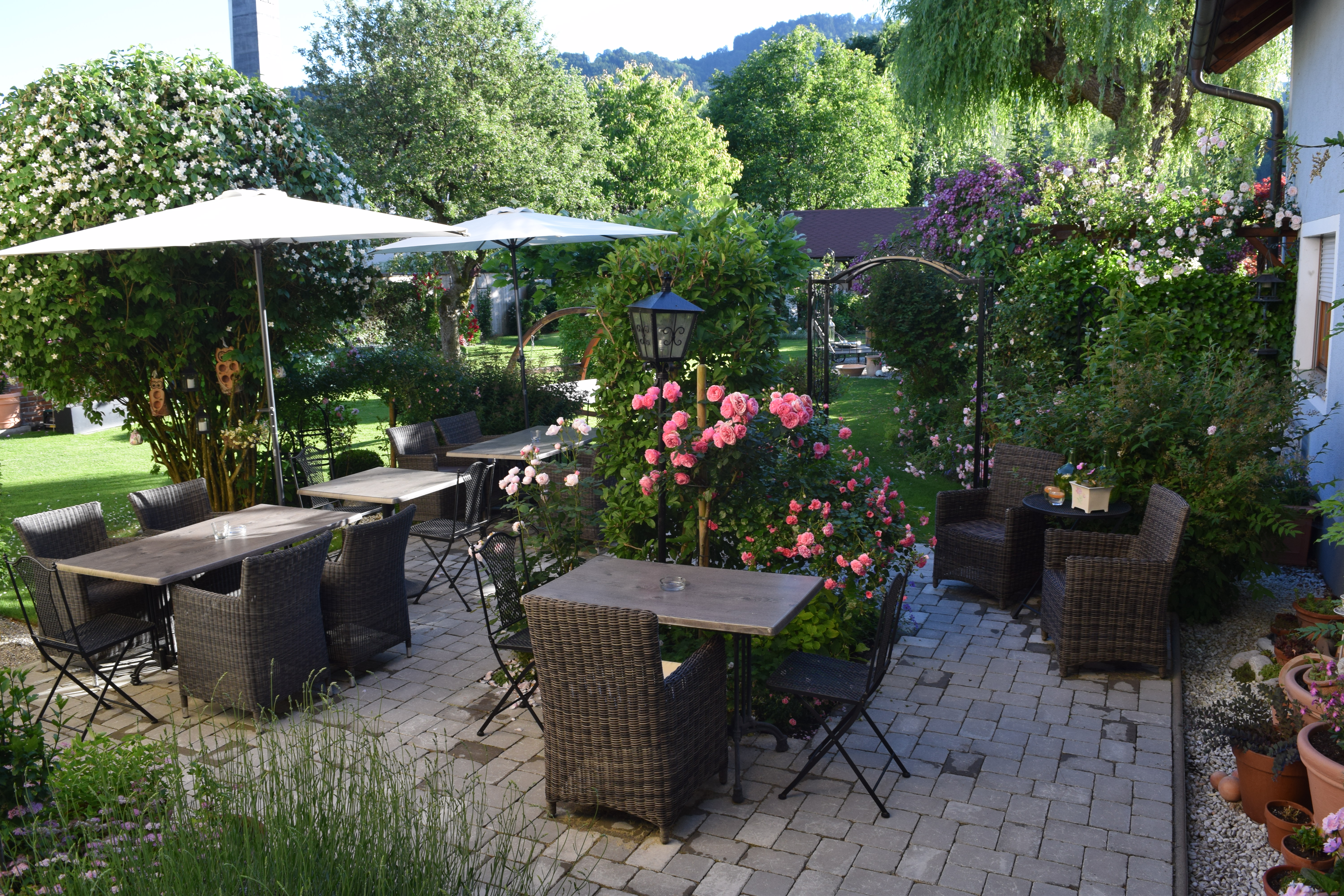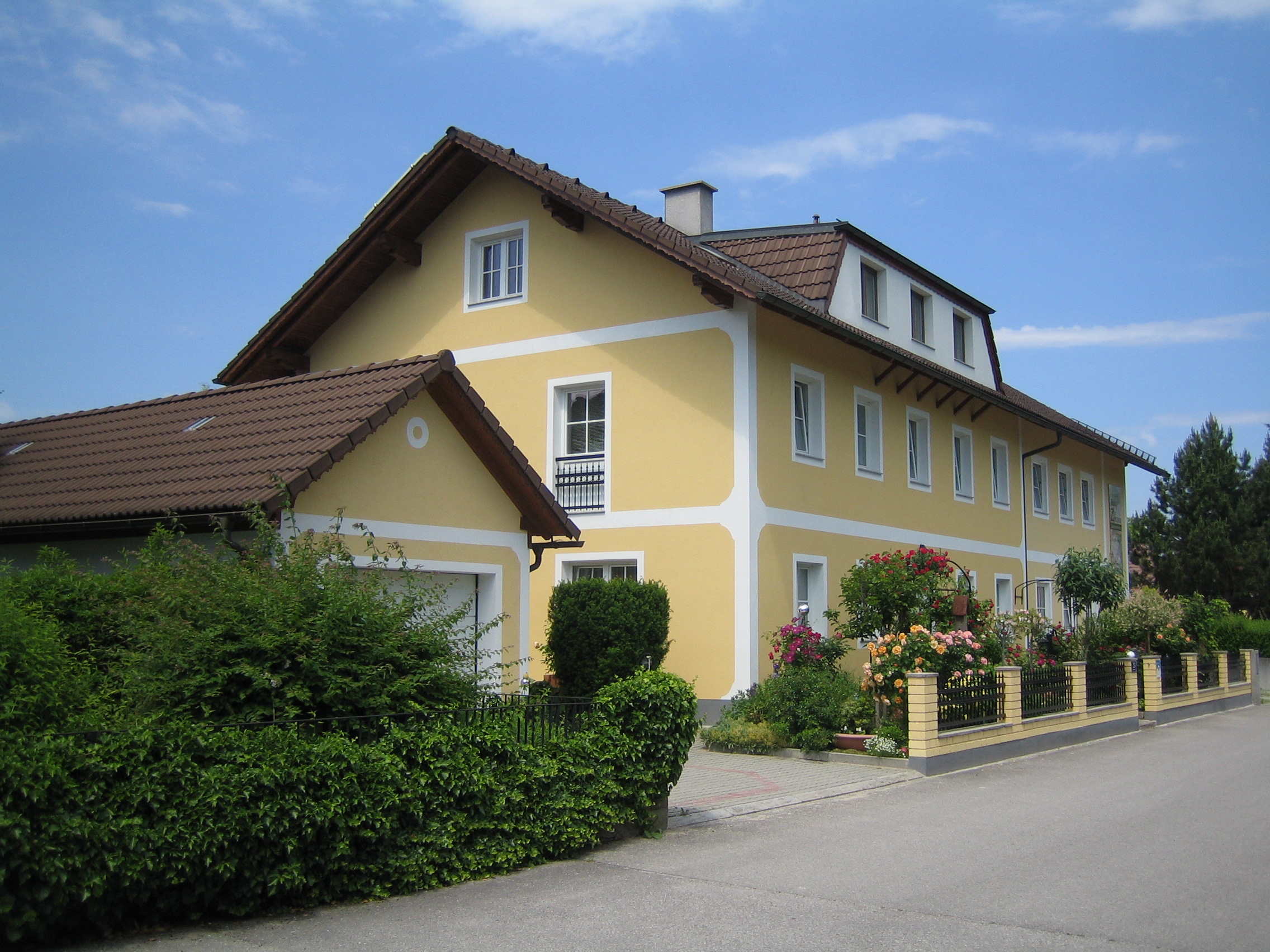 Mitten im Grünen, nur wenige Gehminuten vom Stadtzentrum Scheibbs entfernt, am Erlauftalradweg, liegt das Gästehaus mit romantischem Rosengarten. Hier sieht man den nahen Ötscher. Vom freundlich-hellen Blassensteinappartement reicht der Blick auf die Blassensteinwarte, das Wahrzeichen von Scheibbs. Vom Genießerappartement "Penthouse" haben Sie einen herrlichen Ausblick über Scheibbs und den großzügigen Gästegarten. Ruhige Plätzchen finden sich im großen Garten, auf der Terrasse am Quellstein, auf der sonnigen Liegewiese und im romantischen Salettl. Auch für Sport und Spiel findet man allerhand Möglichkeiten im Garten. Bei der Ausstattung der Zimmer wurde viel Wert auf Details und Kleinigkeiten, die den Aufenthalt verschönern, gelegt. Genießen Sie unser reichhaltiges Frühstück mit regionalen Produkten gerne auch im Garten und starten Sie entspannt in den Tag!