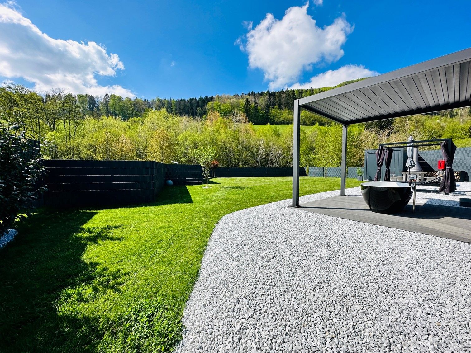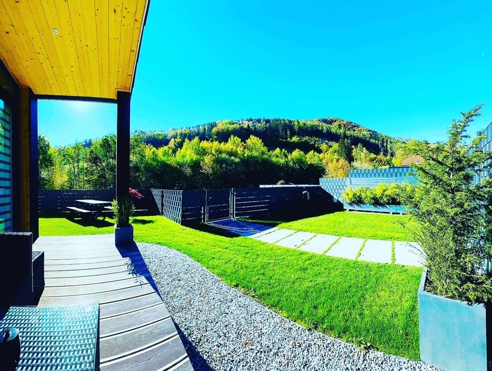 Von der Terrasse aus haben Sie einen freien Blick in die wundervolle Natur im waldreichsten Bezirk des Landes.