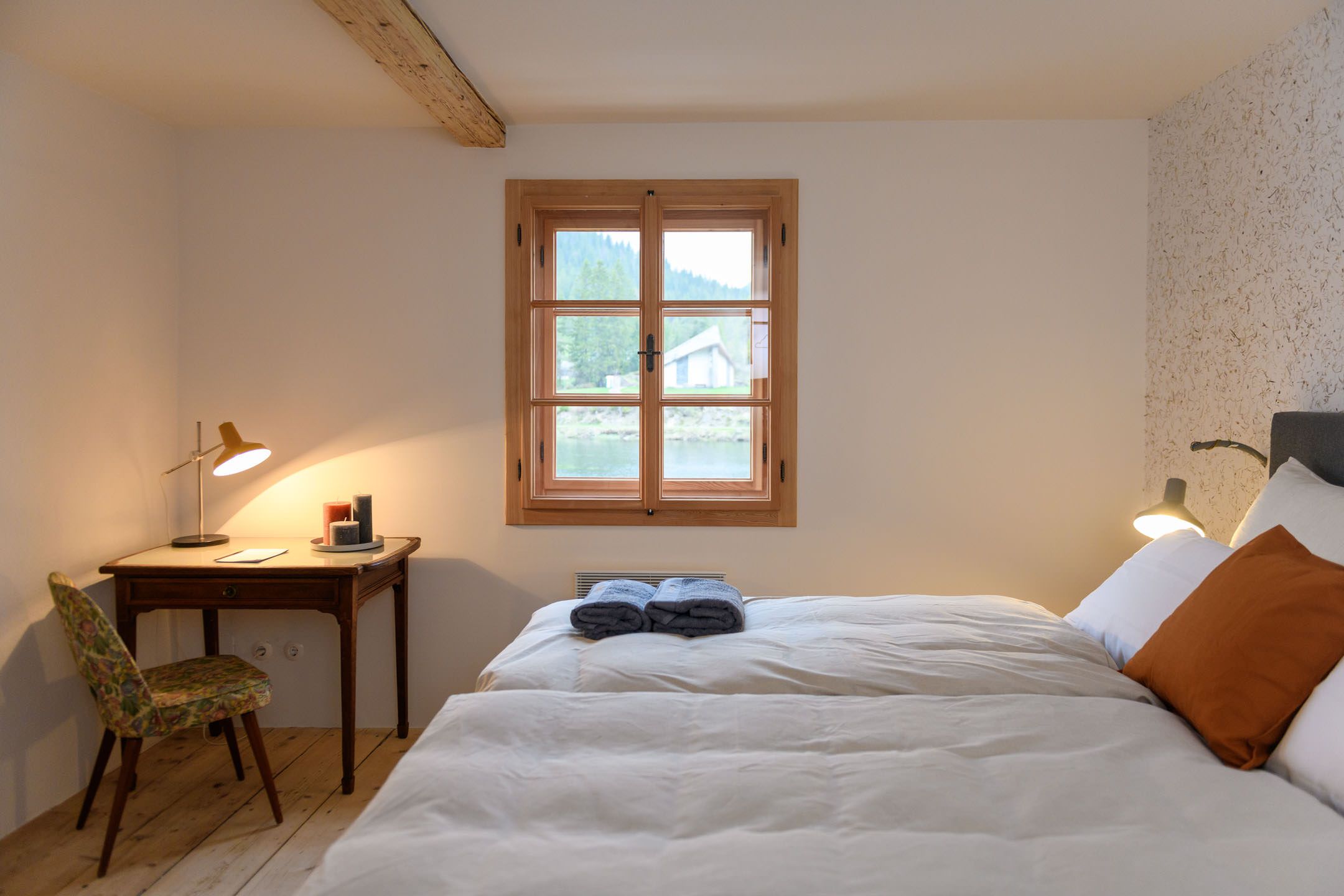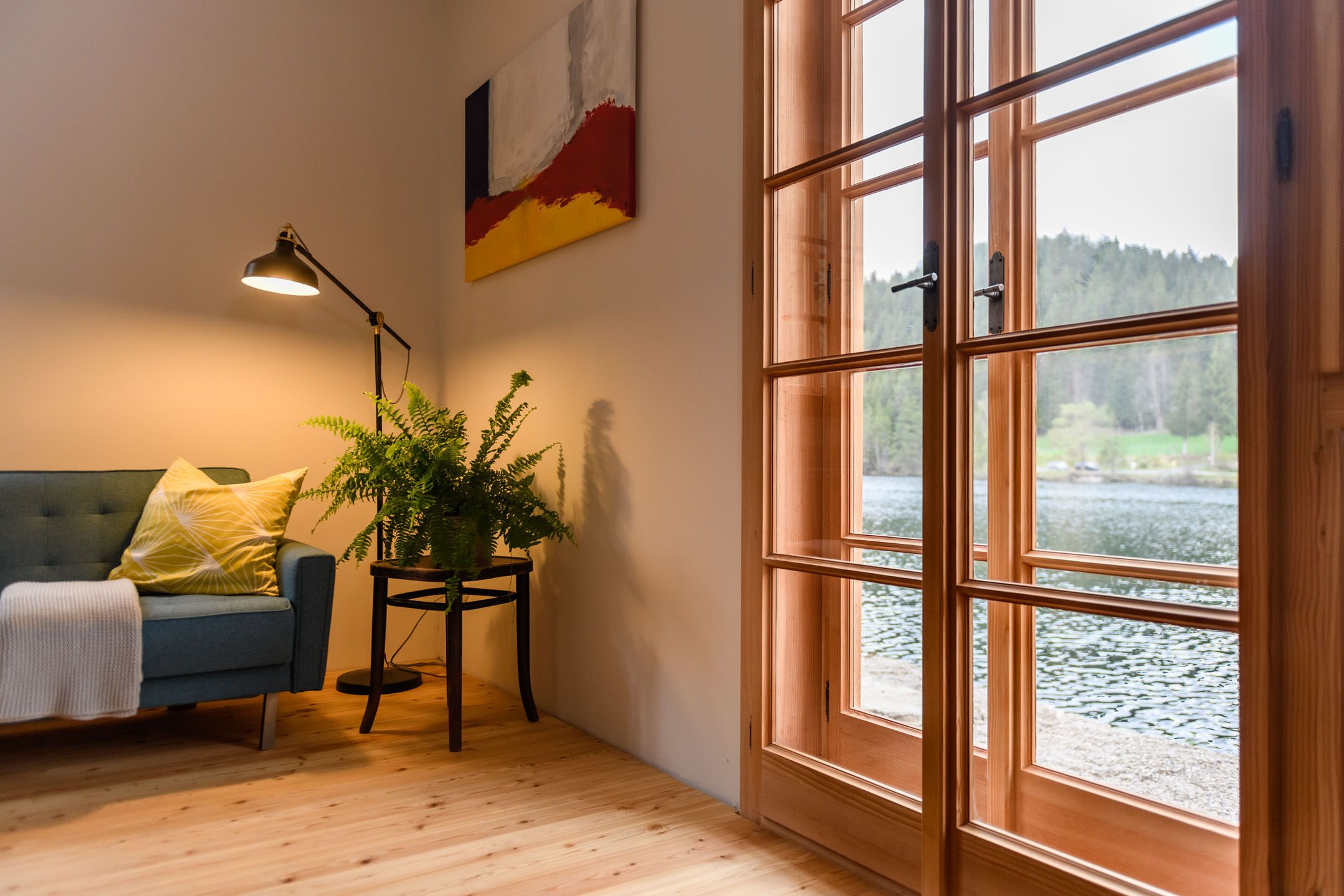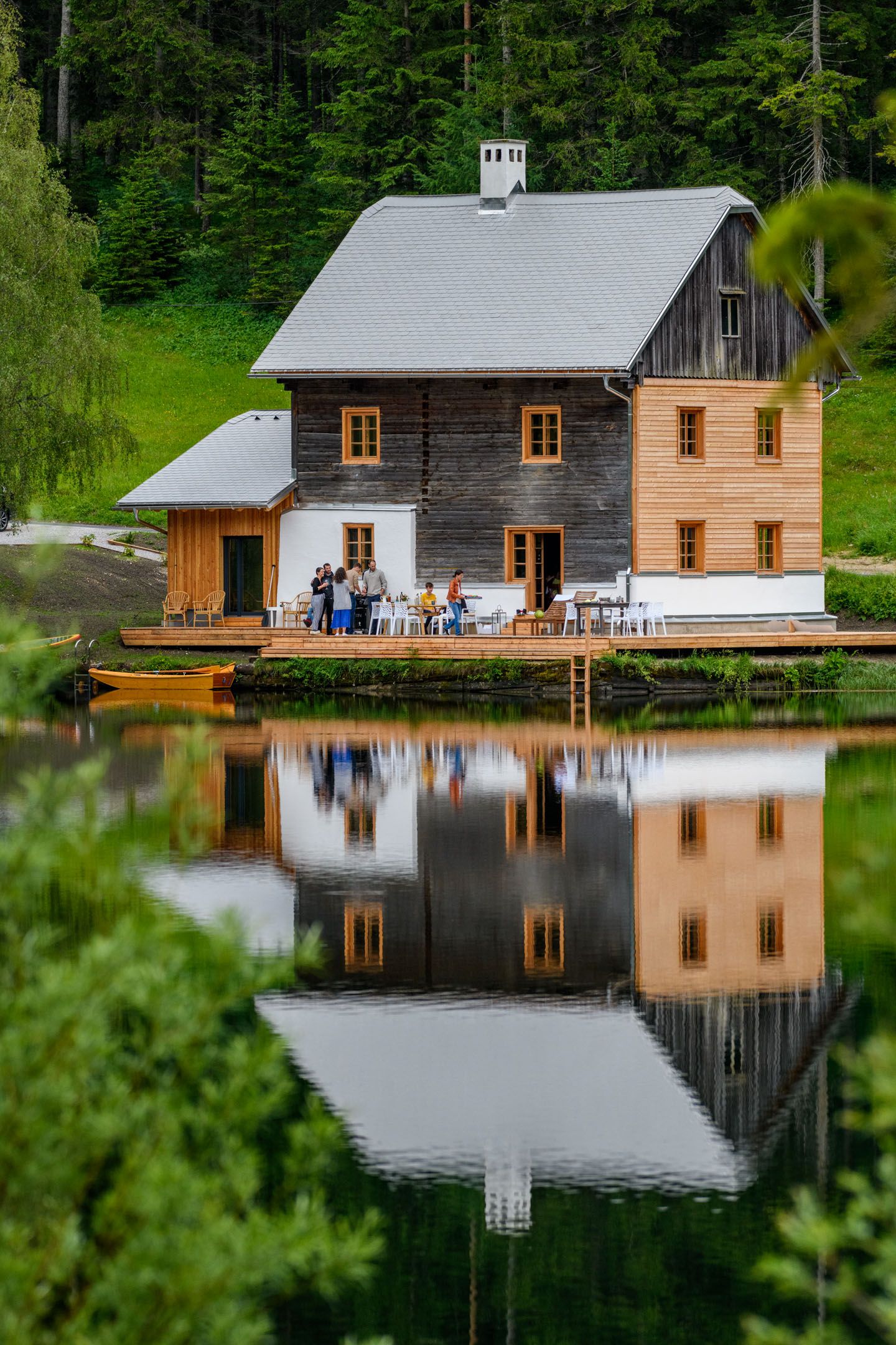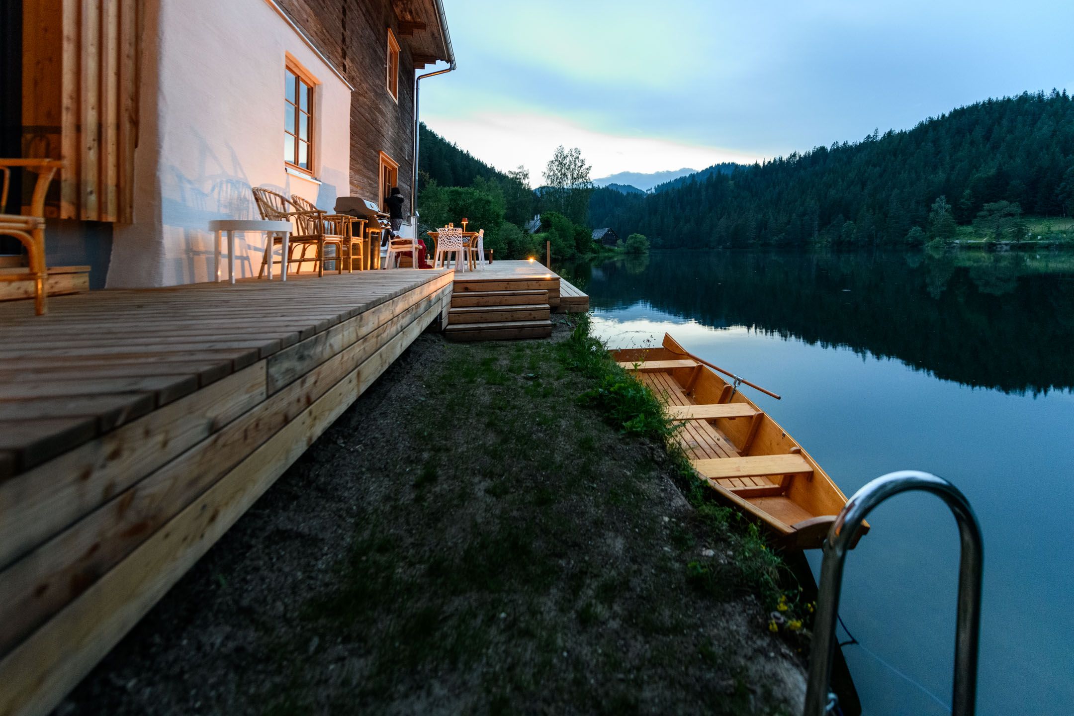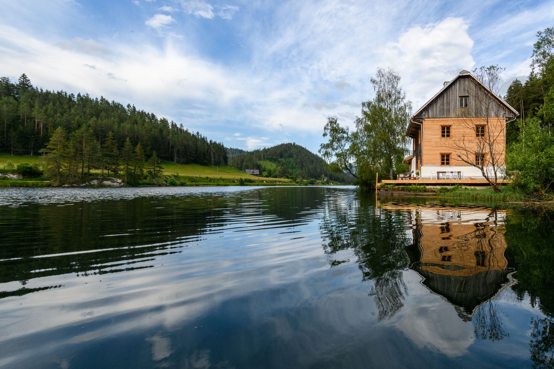 Das Seehaus liegt in der Walster, direkt am idyllischen Hubertussee am Wiener Wallfahrerweg in Richtung Mariazell. Das Seegrundstück hat zwei Badeleitern vom Badesteg in den See, im Winter liegt der meist zugefrorene See direkt vor der Tür und bindet das Haus an die Langlaufloipe Walstern an. Im Haus befinden sich drei Schlafzimmer und ein Badezimmer im Obergeschoss, mit Platz für 6 Erwachsene und 2 Kinder. Im Erdgeschoß sind Sauna mit Ausgang auf den Badesteg, großzügige Küche und Wohnraum, Kachelofen und ein zweites Badezimmer.