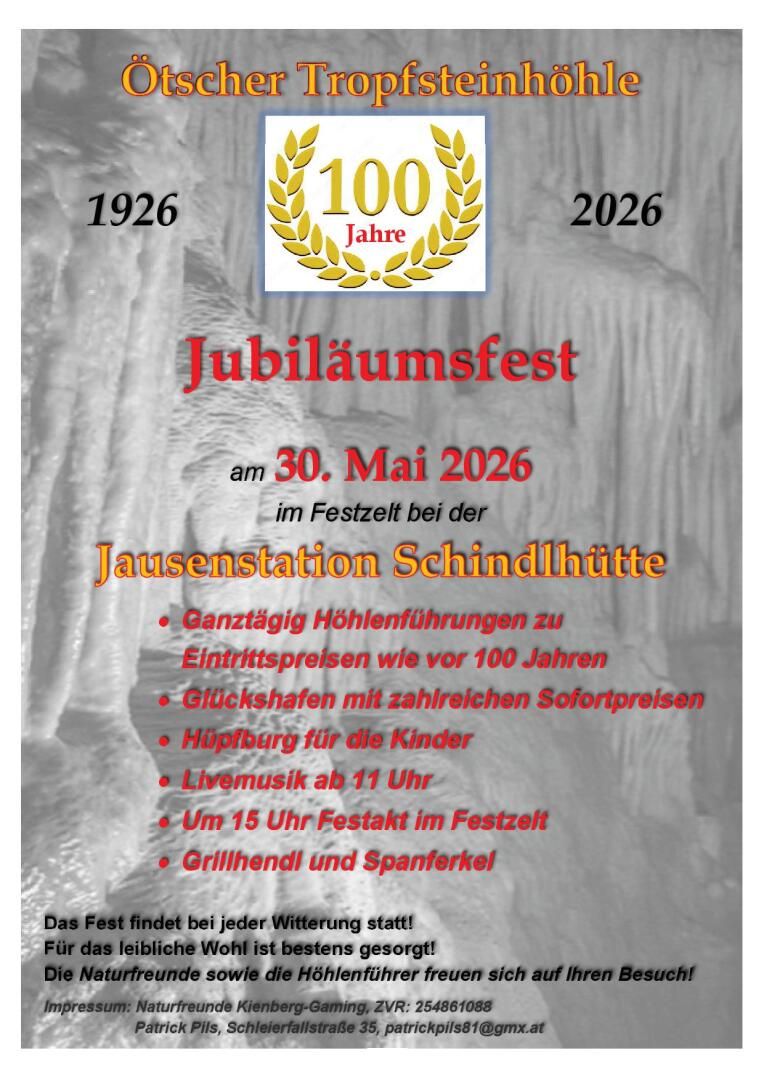 Zu diesem Anlass veranstalten die Naturfreunde Kienberg/Gaming am 30. Mai 2026 ein großartiges Fest mit Festzelt bei der Schindlhütte!