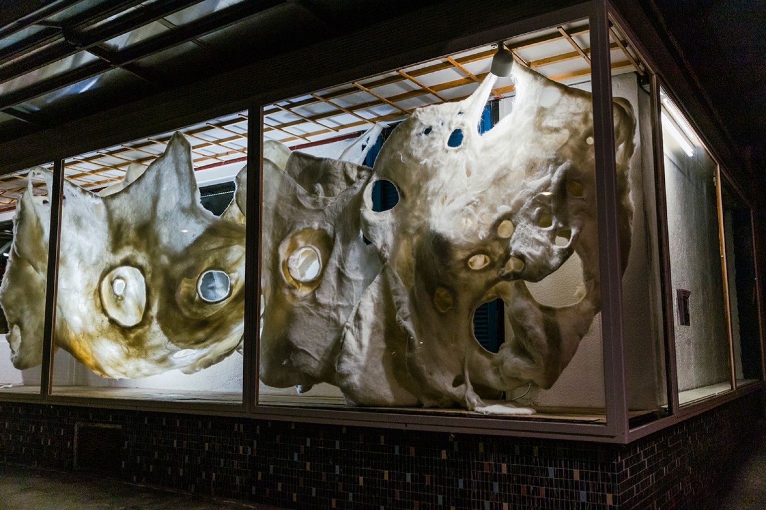 In ihrer künstlerischen Arbeit setzt sich Fiedermutz mit Erinnerung, Sichtbarkeit und gesellschaftlichen Narrativen auseinander. In der Installation ISOLATION gestaltet sie aus Filz eine raumgreifende Struktur, die Schutz und Abschirmung zugleich symbolisiert. Das isolierende Material bildet eine dichte, einhüllende Umgebung, die Geborgenheit vermittelt – zugleich jedoch durchlöchert ist von Öffnungen, die den Blick nach außen ermöglichen. Diese Sichtfenster verweisen auf die Spannung zwischen Rückzug und Konfrontation: Was wird wahrgenommen, was ausgeblendet? Die Arbeit entstand ursprünglich für ein Schaufensterprojekt in Haag und bezieht sich auf ein historisches Ereignis: den Todesmarsch von Häftlingen des KZ Hinterbrühl nach Mauthausen in der Karwoche 1945, bei dem in Haag zehn Menschen ermordet wurden.