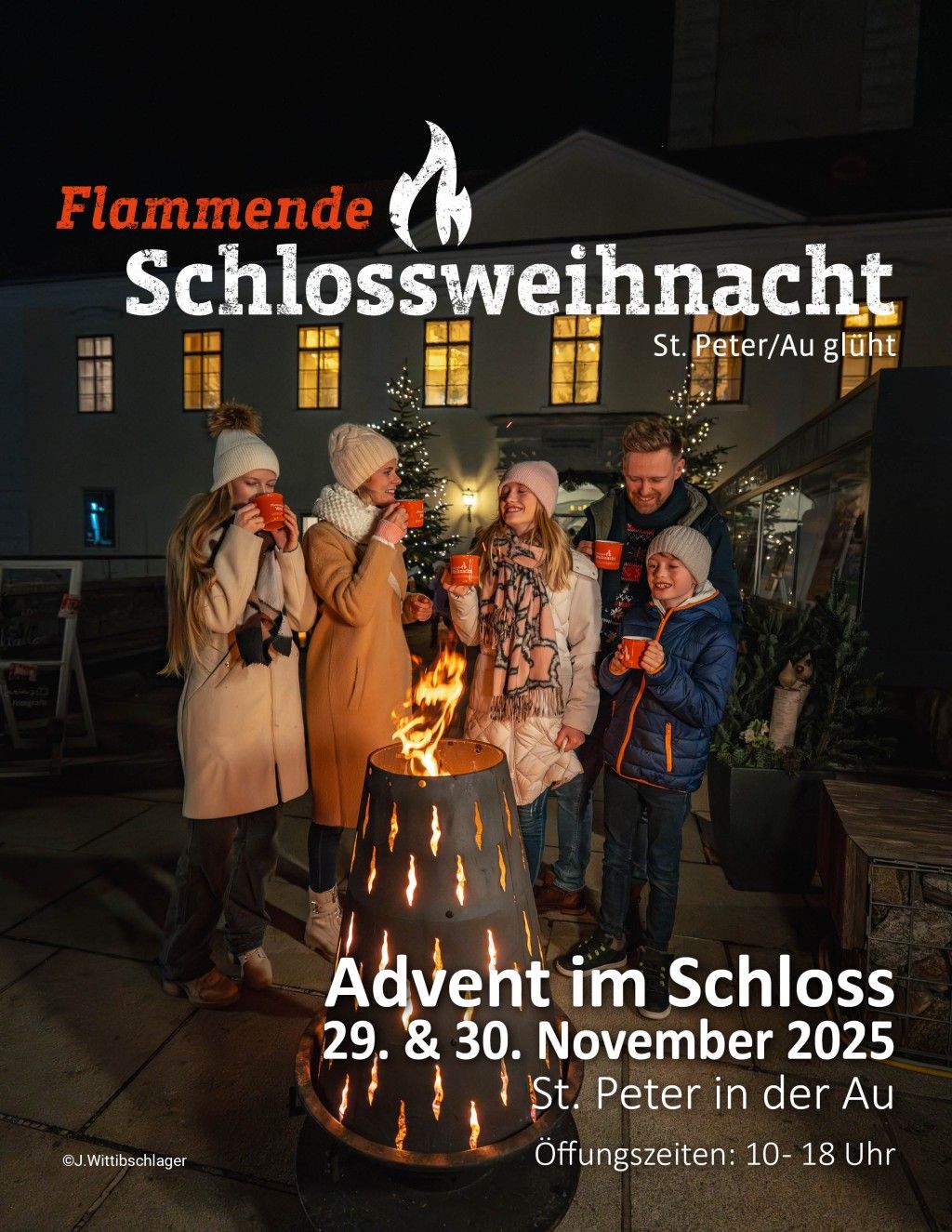 Die Flammende Schlossweihnacht im historischen Ambiente des Schlosses St. Peter in der Au ist ein Erlebnis für die ganze Familie – ein Ort zum Genießen, Staunen und Eintauchen in die Magie der Adventzeit.